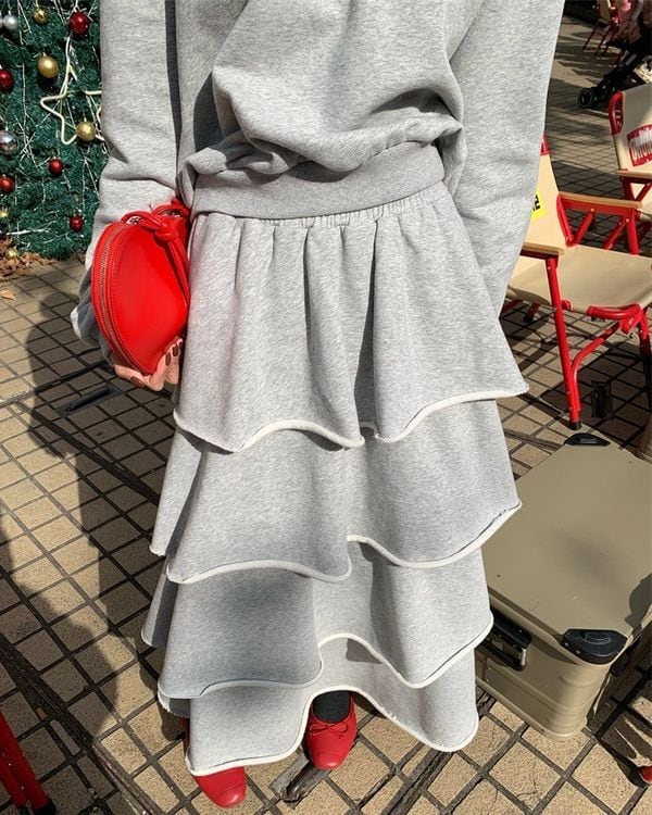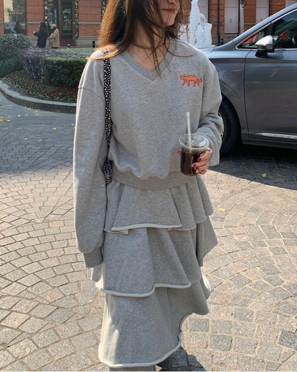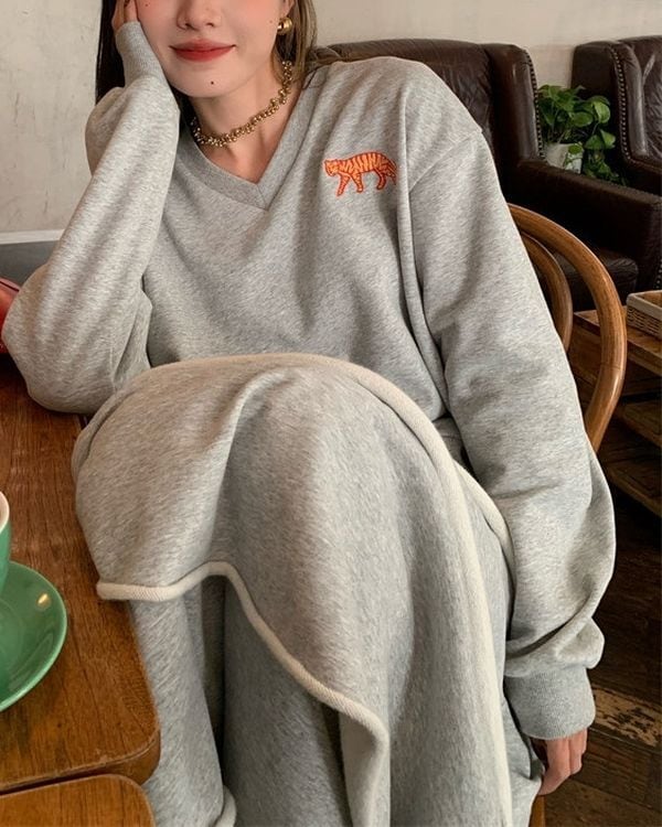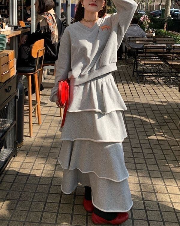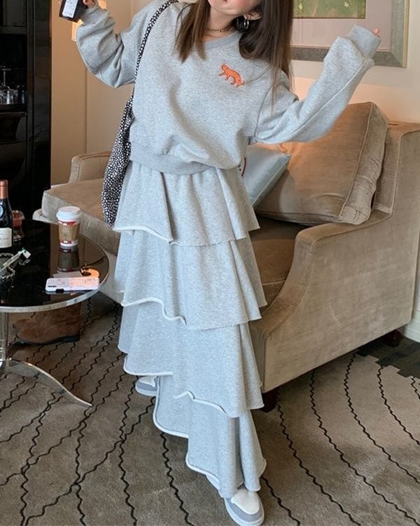 Animal Embroidered Pullover/Tiered Long Skirt V0003 ju