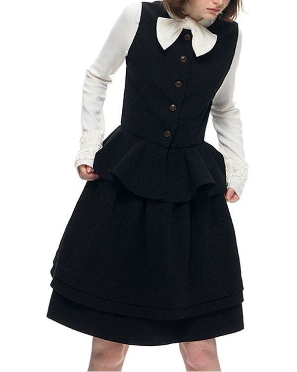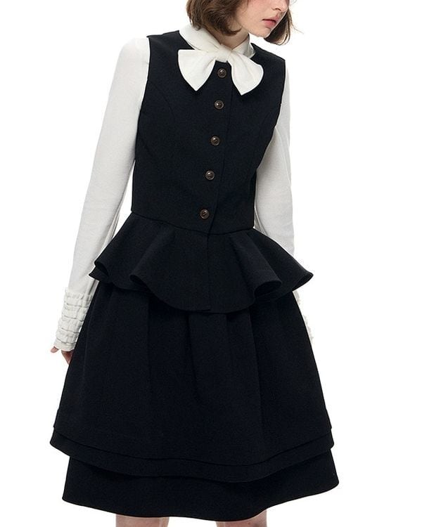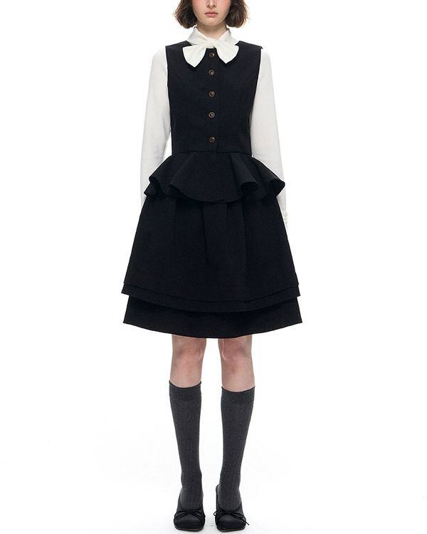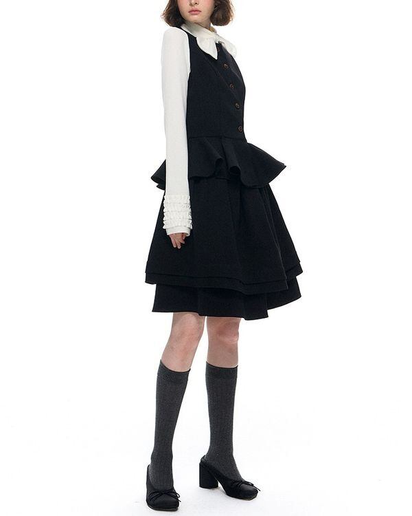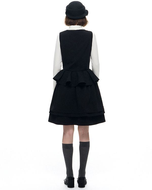 Front Button Vest /Peplum Layered Skirt V0006 go