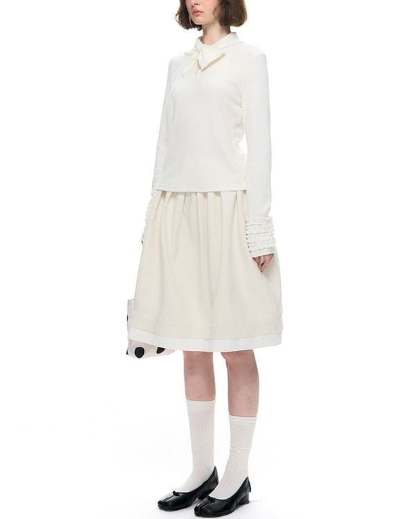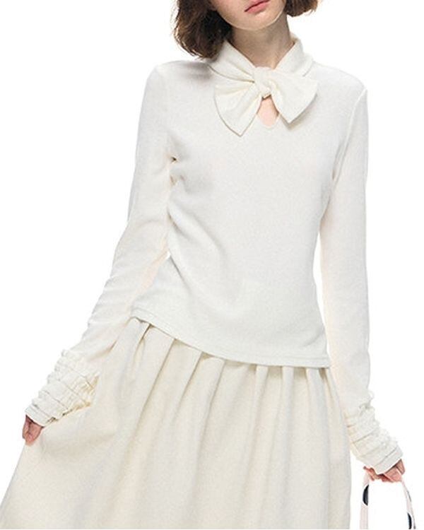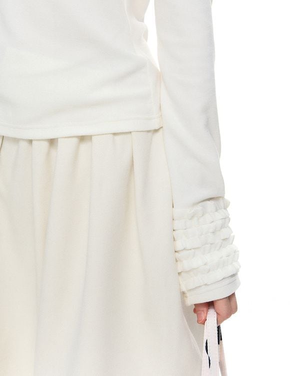 Ribbon Gather Cuffs Pullover V0014 go