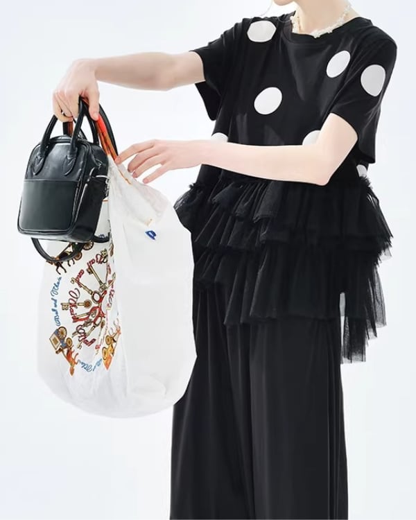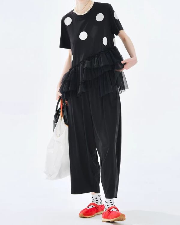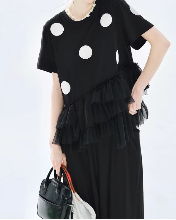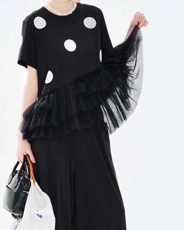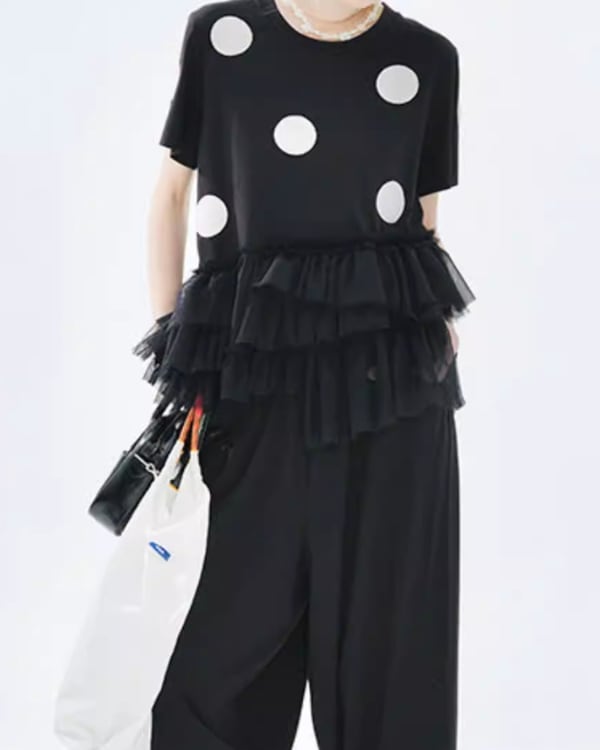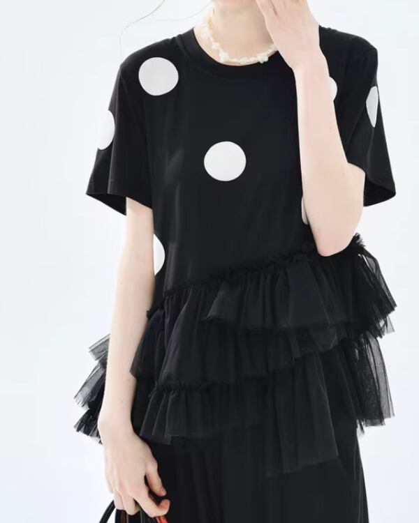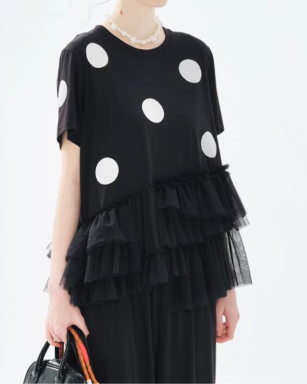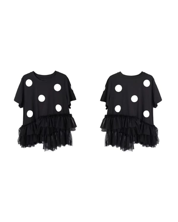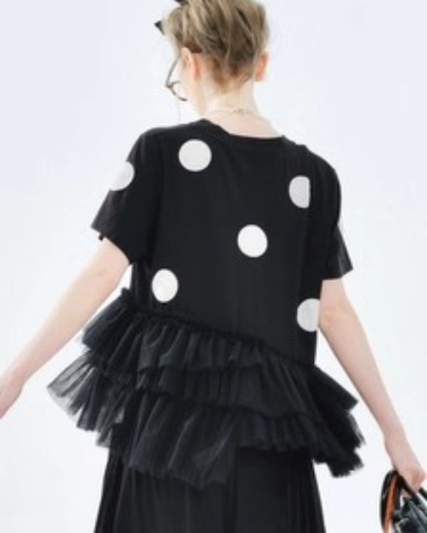 Asymmetric Polka-Dot Tulle Tee V0004 im