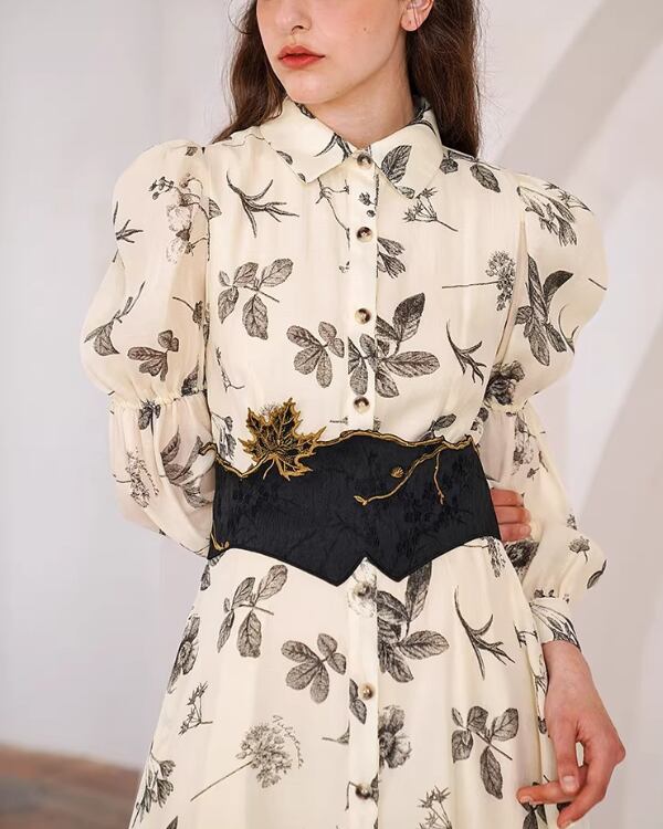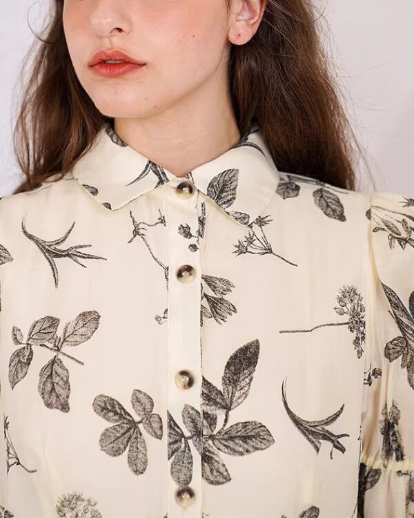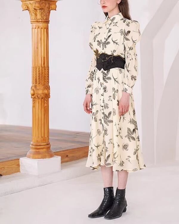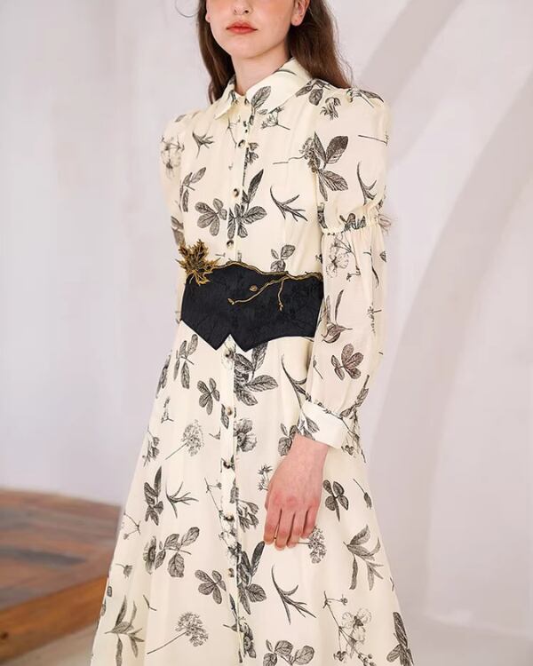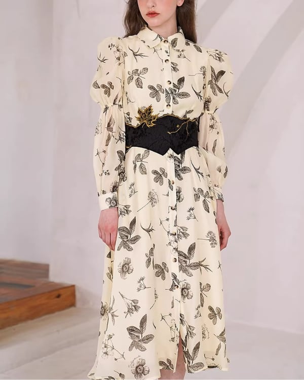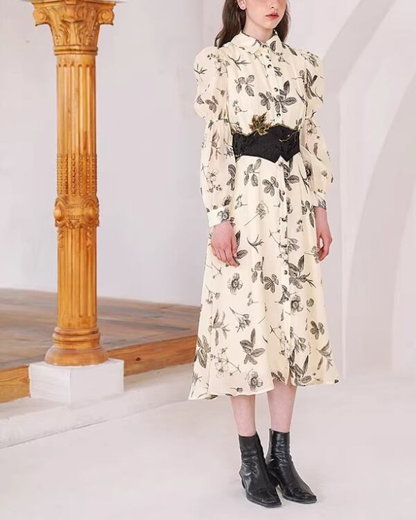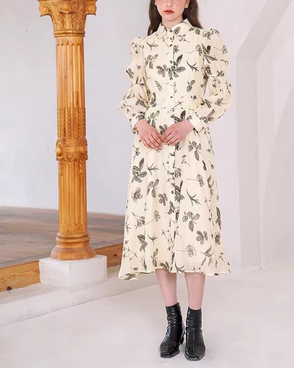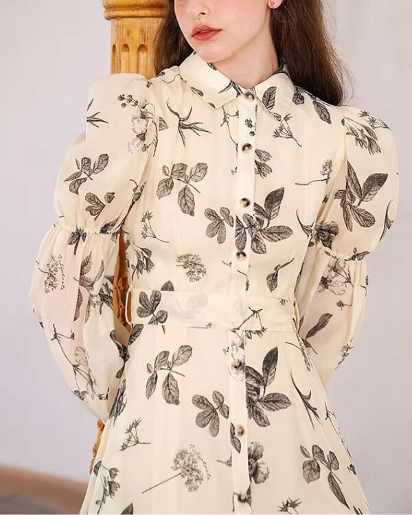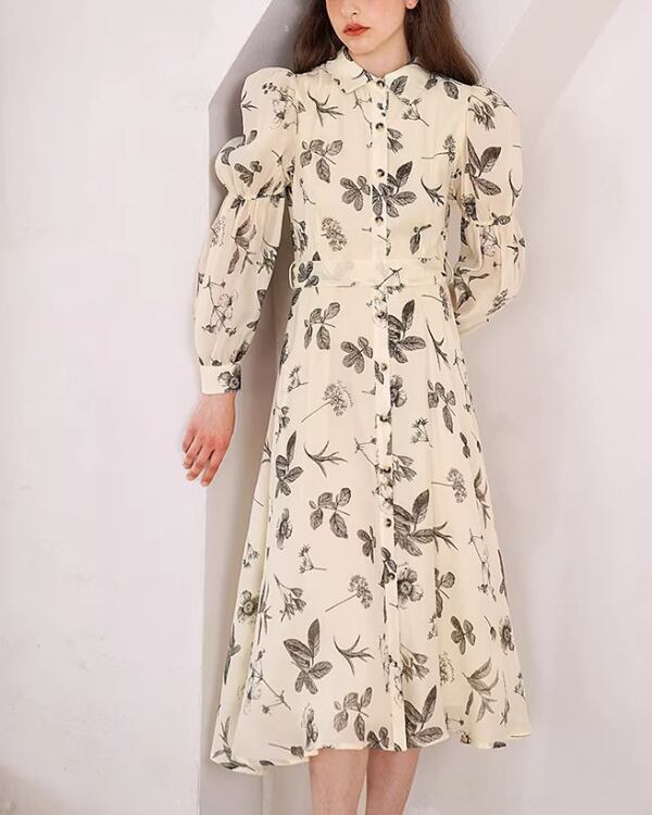 Vintage Botanical Puff Sleeve Dress V0060 ca