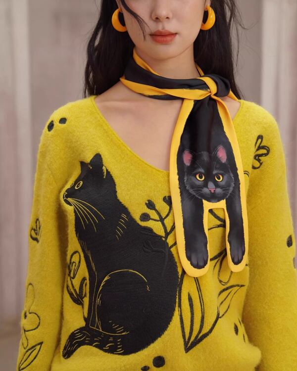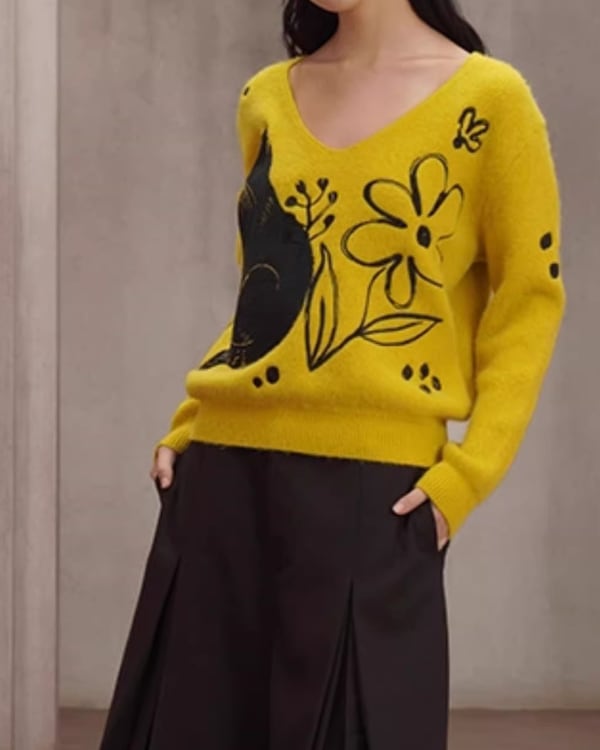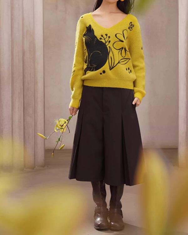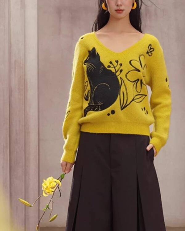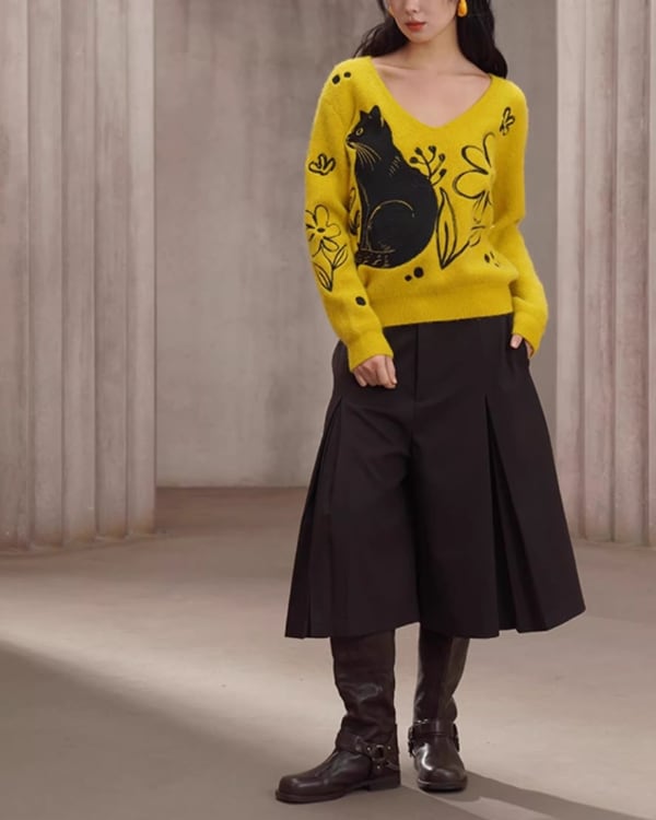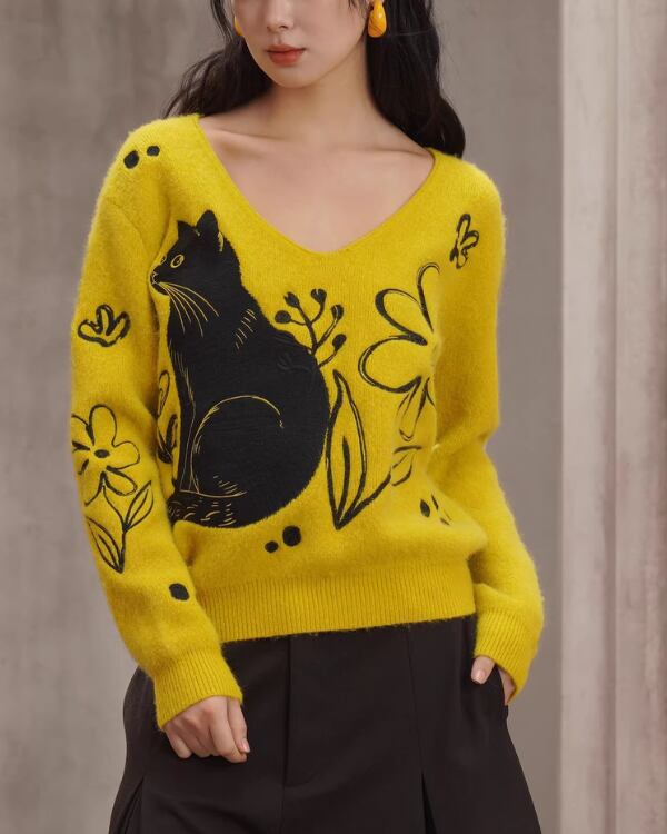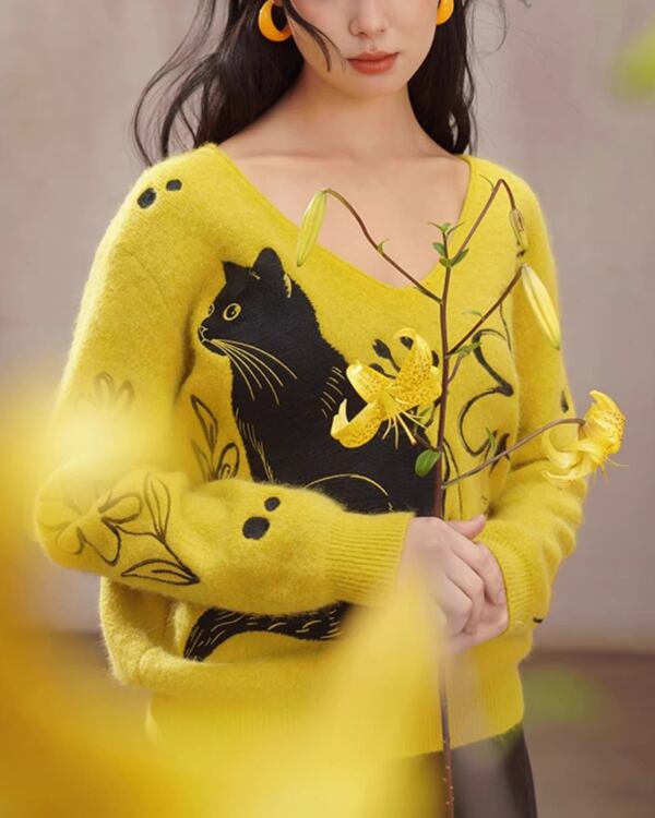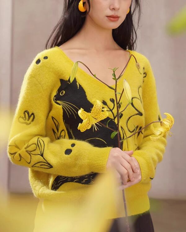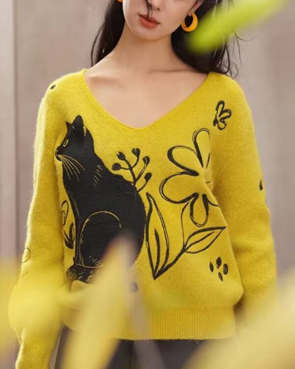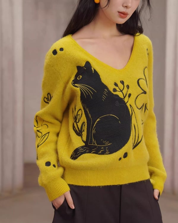 Black Cat V-neck Art Knit V0069 ca