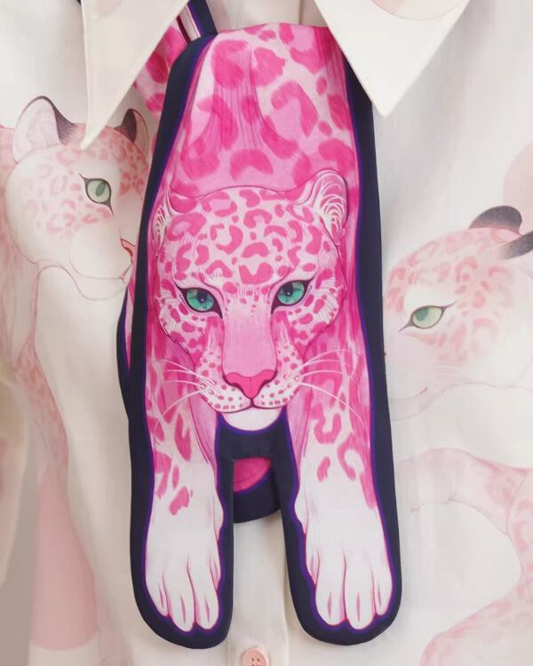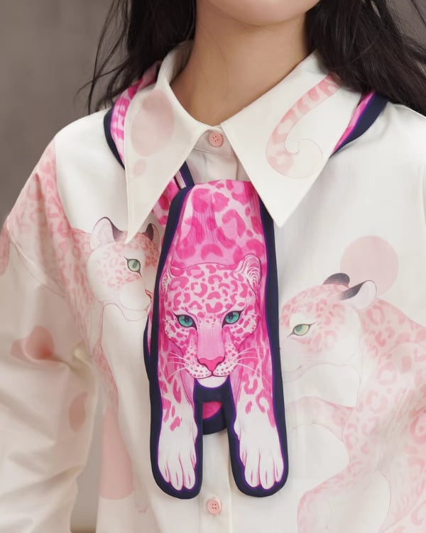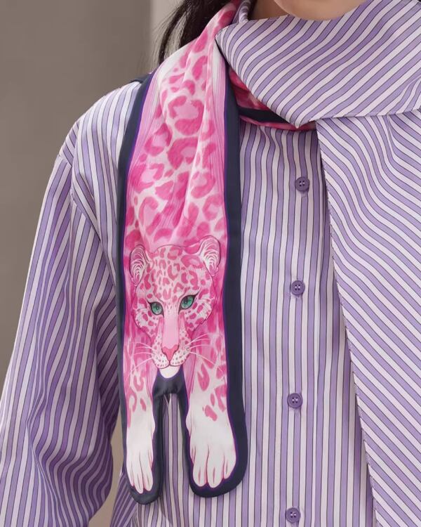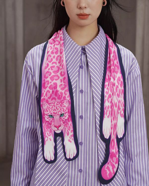 Pink Leopard Narrow Scarf V0070 ca