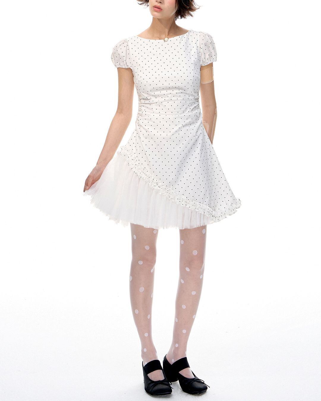 Asymmetry Skirt Dot One-piece V0131 go