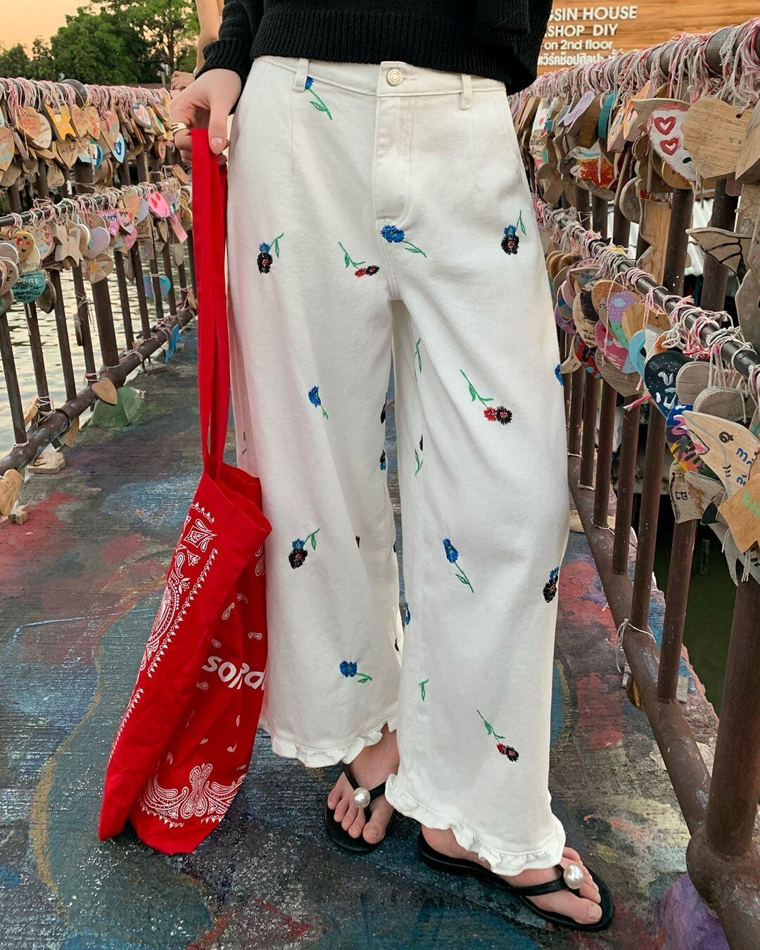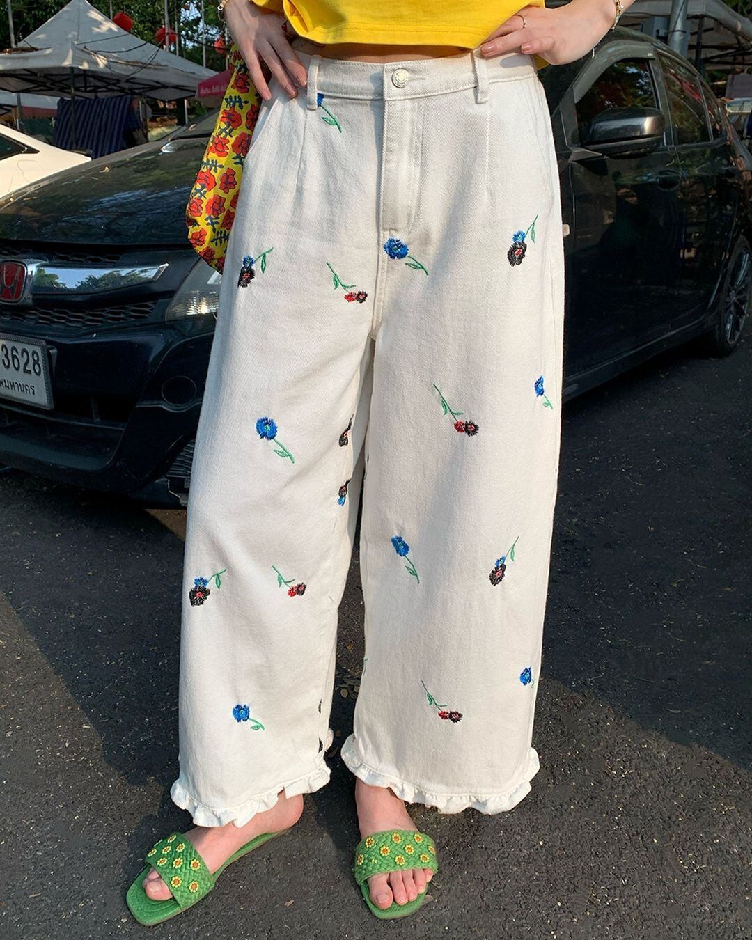 Floral Embroidered Pants V0157 ju