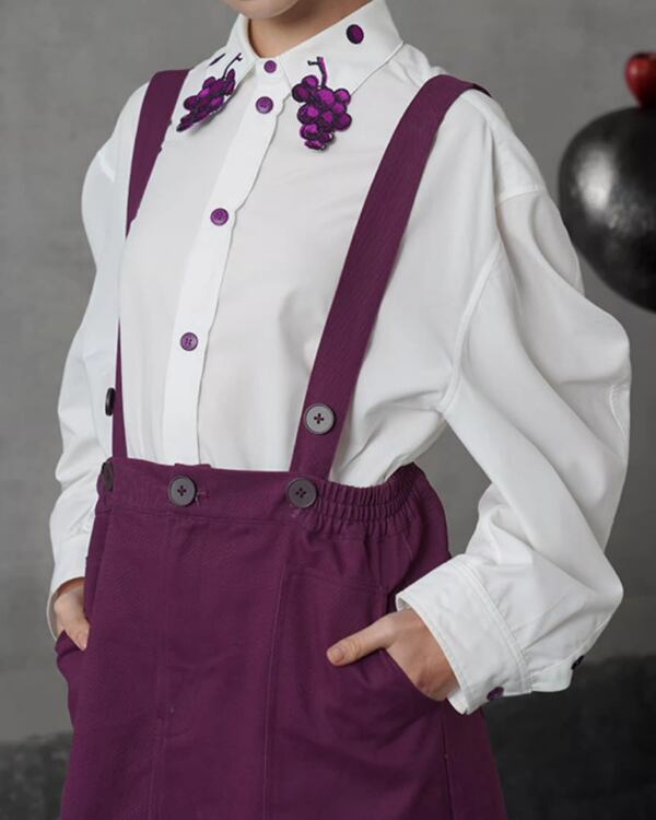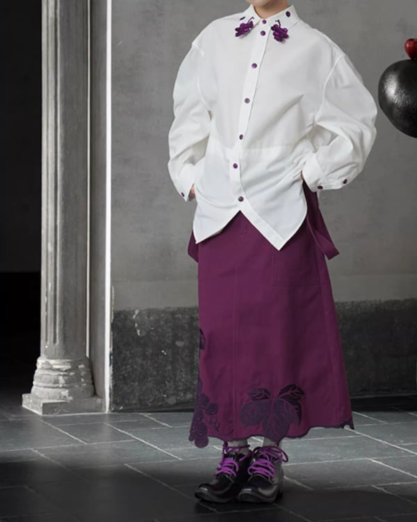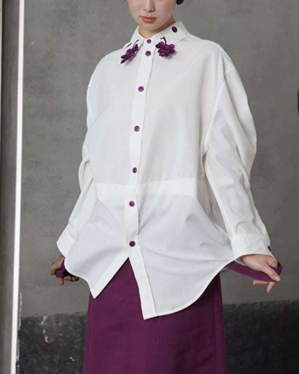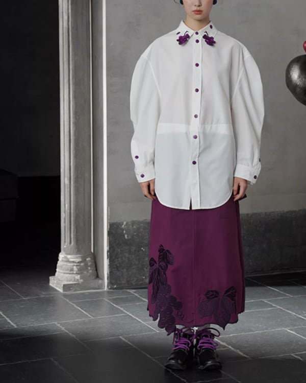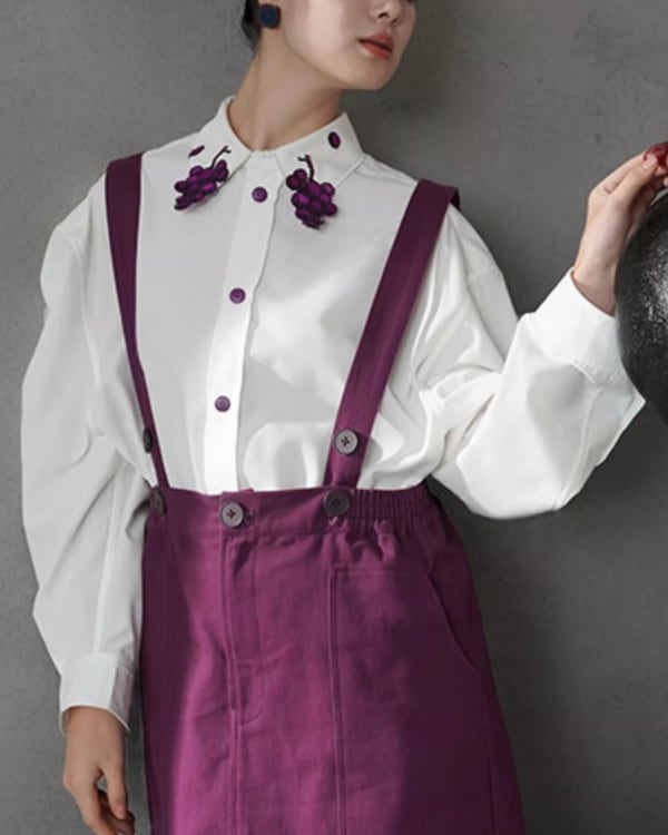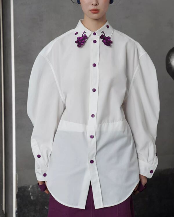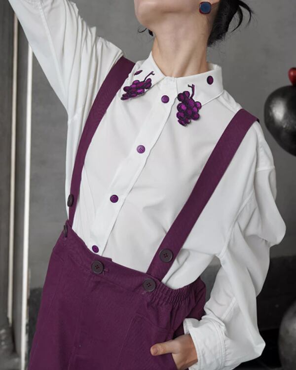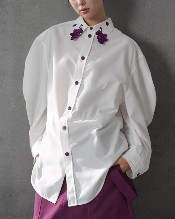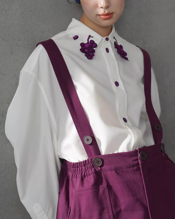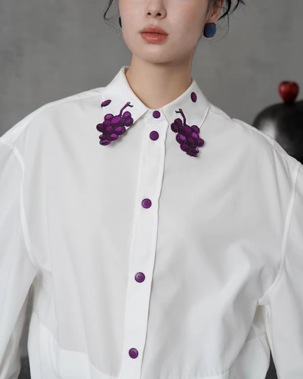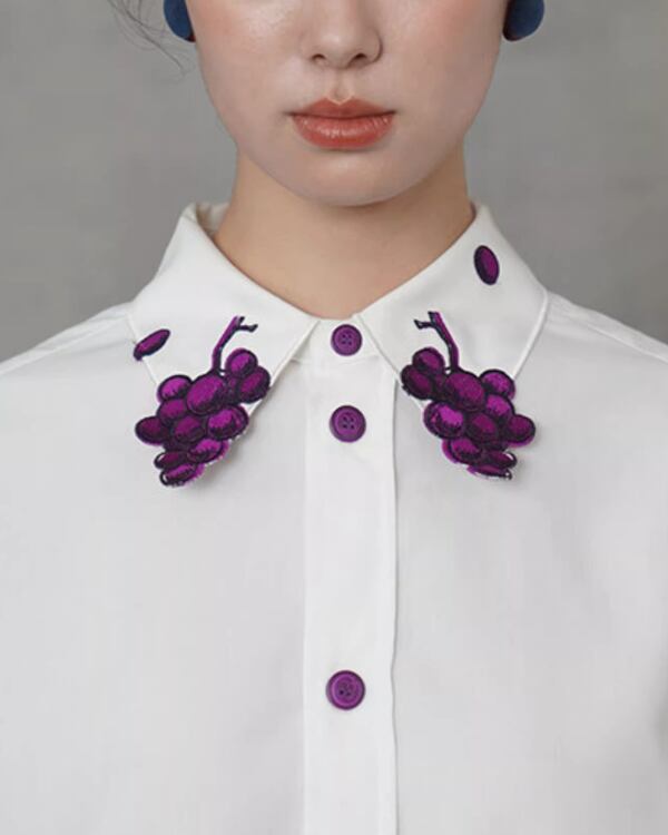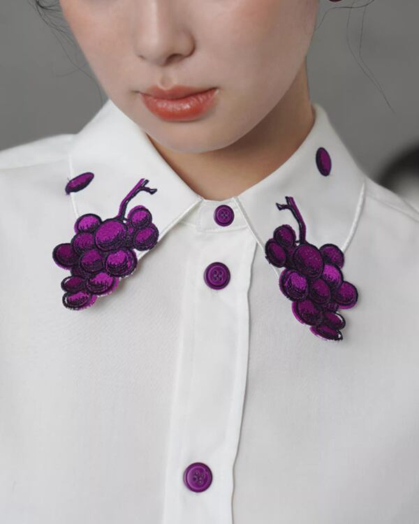 Grapevine Embroidery Pointed Collar Blouse V0078 ca