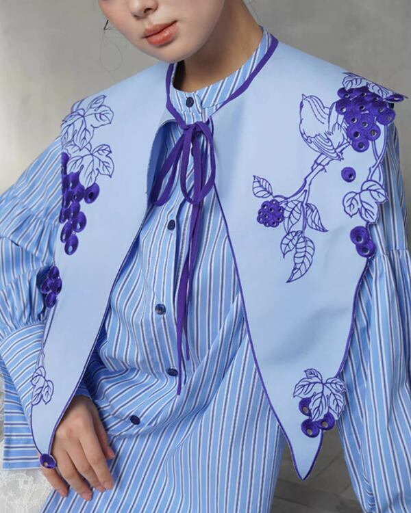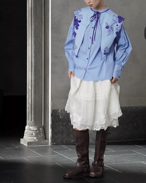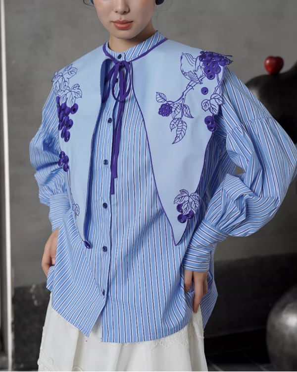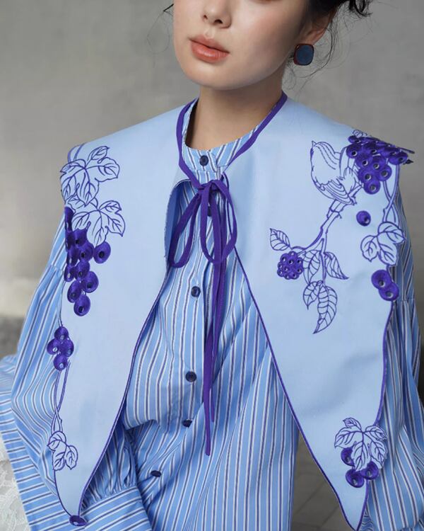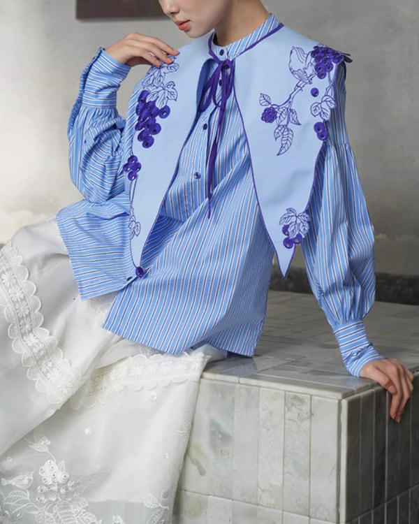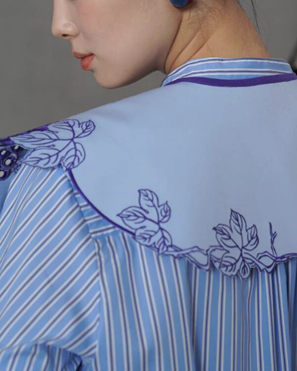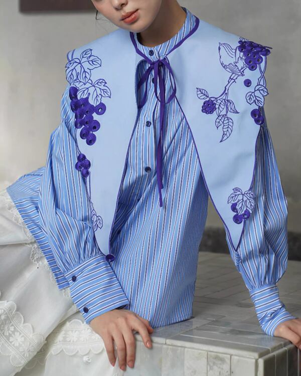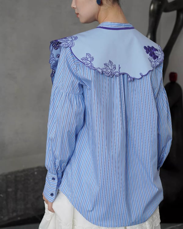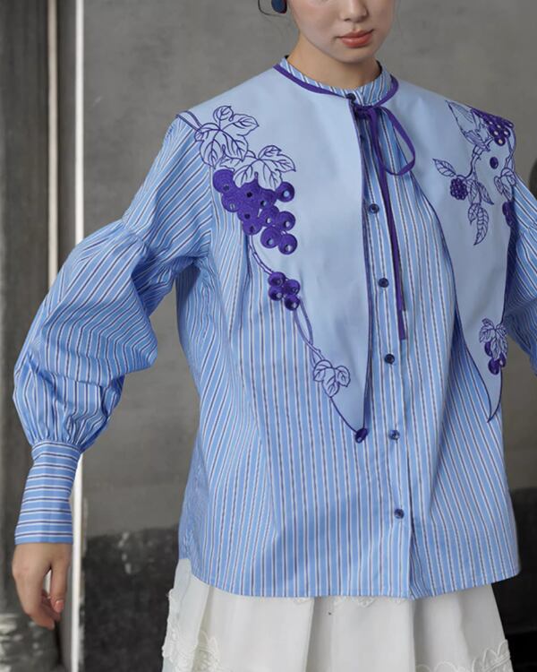 Botanical Embroidered Collar Shirt Blouse V0080 ca
