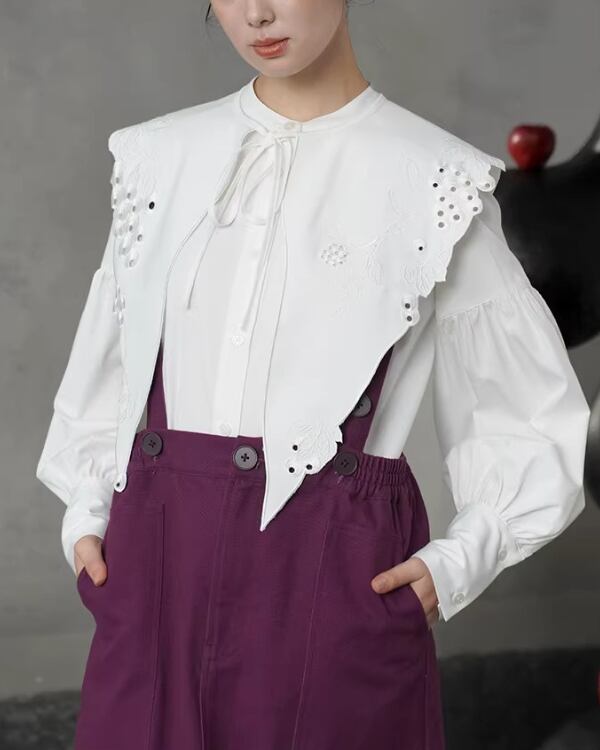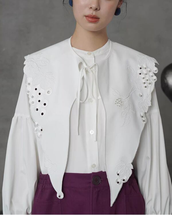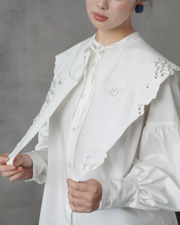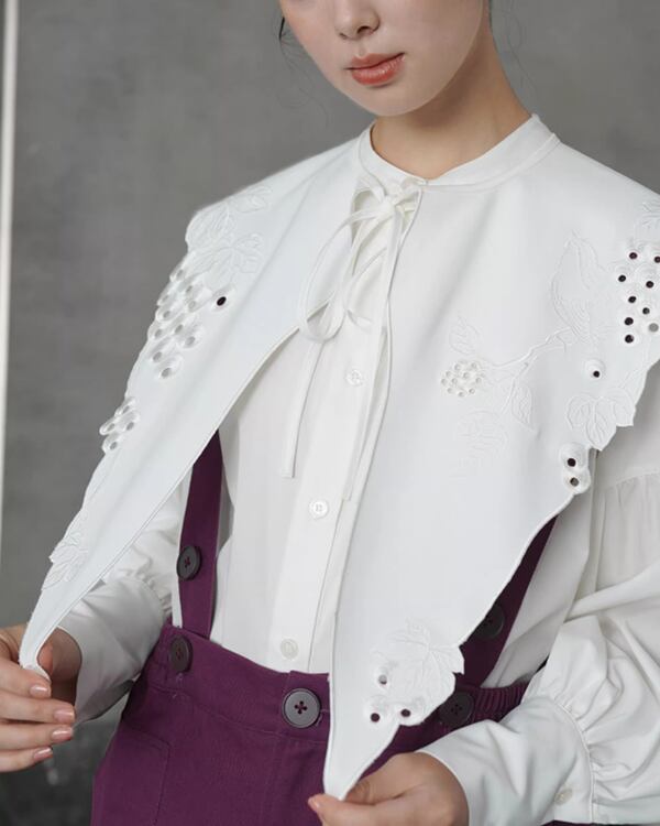 Eyelet Lace Embroidered Collar & Blouse V0083 ca