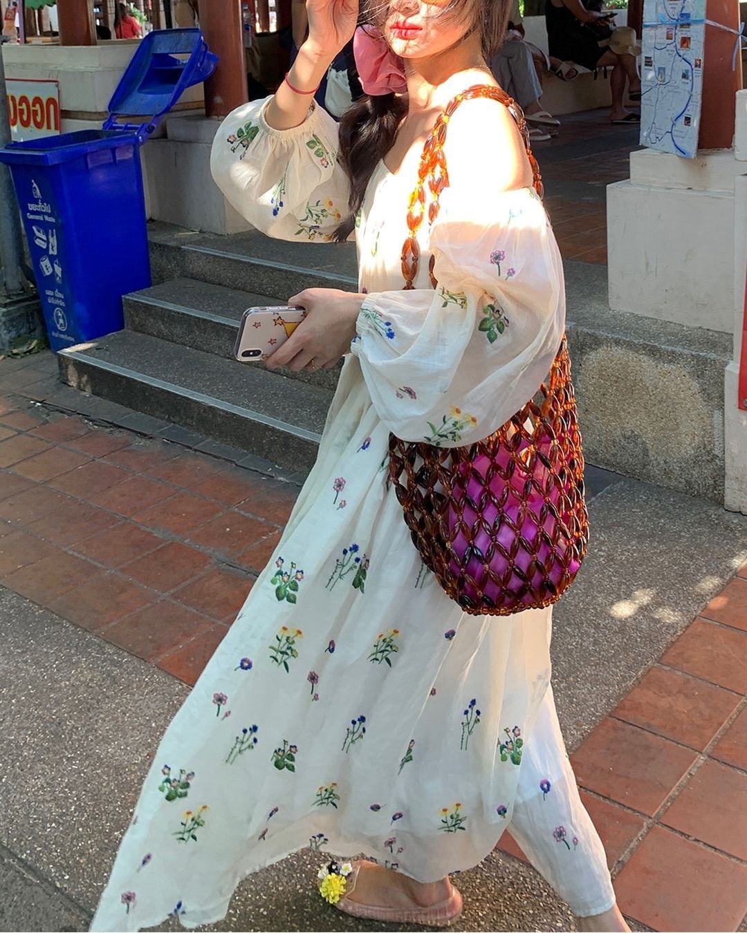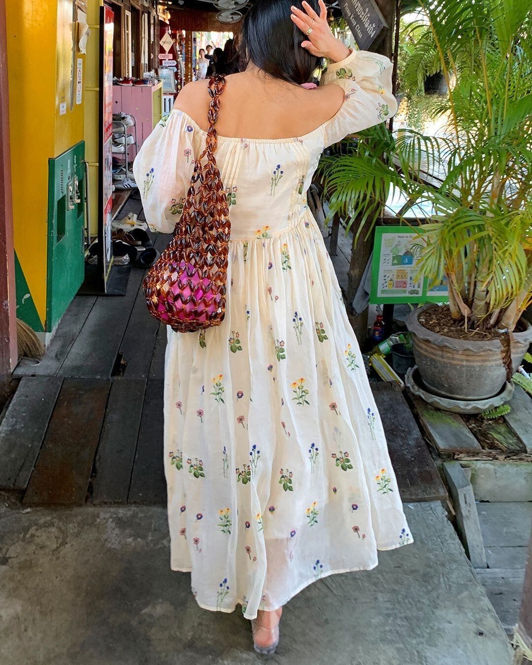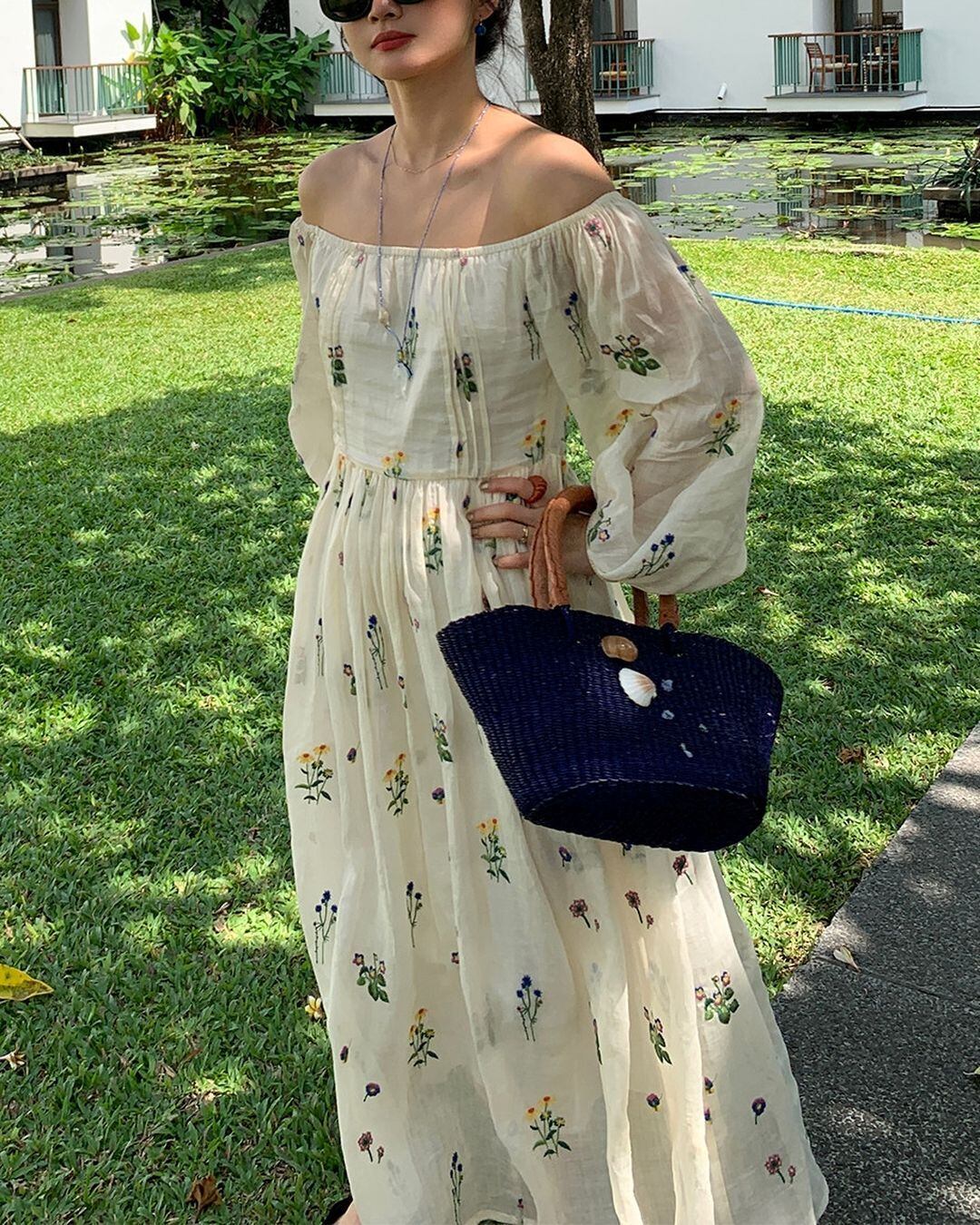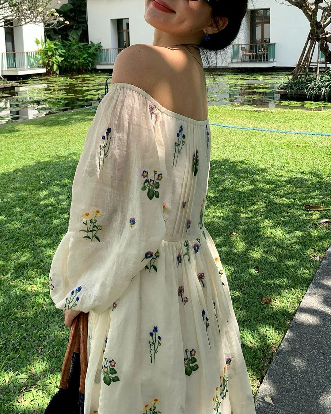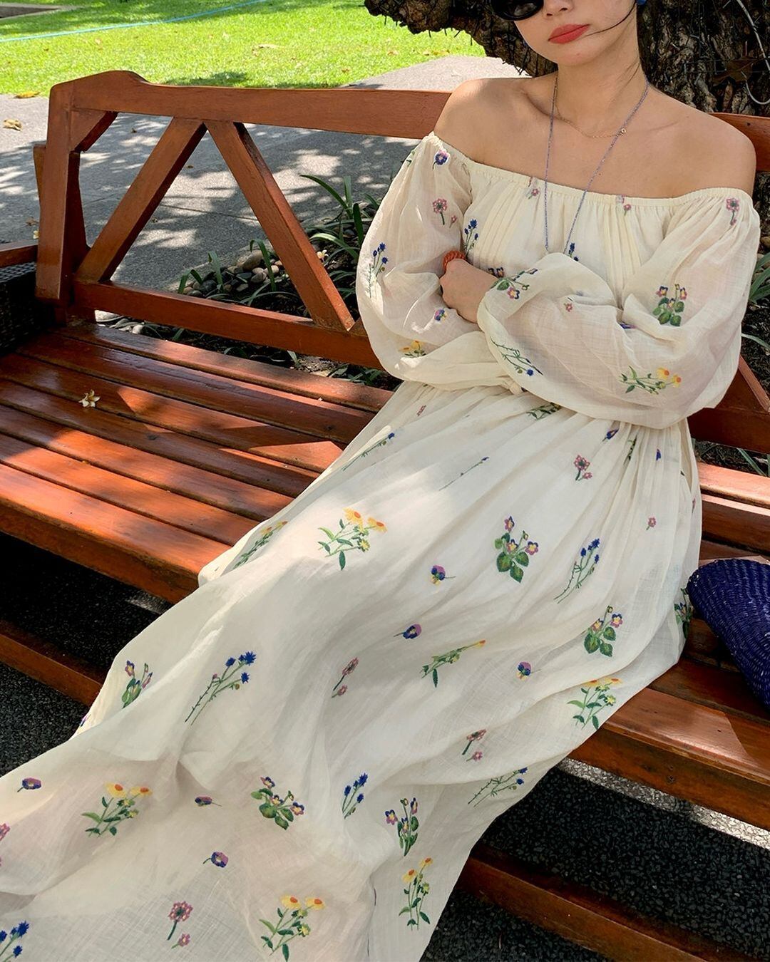 Floral Embroidered Off-shoulder Maxi One-piece V0165 ju