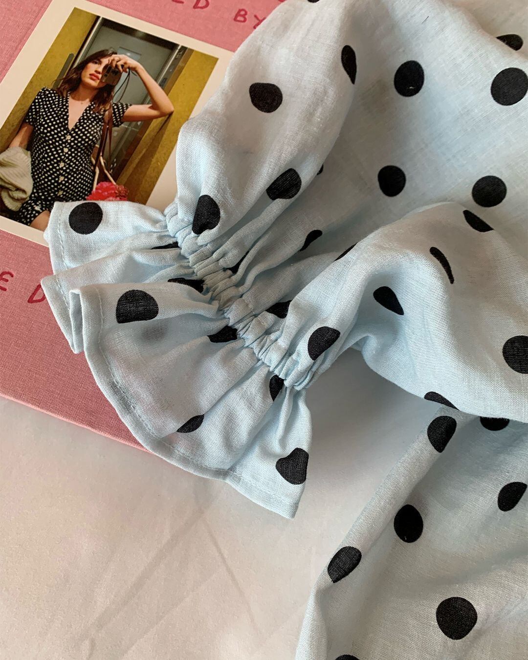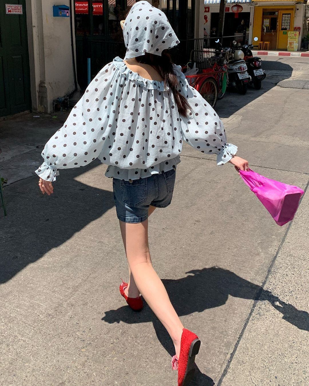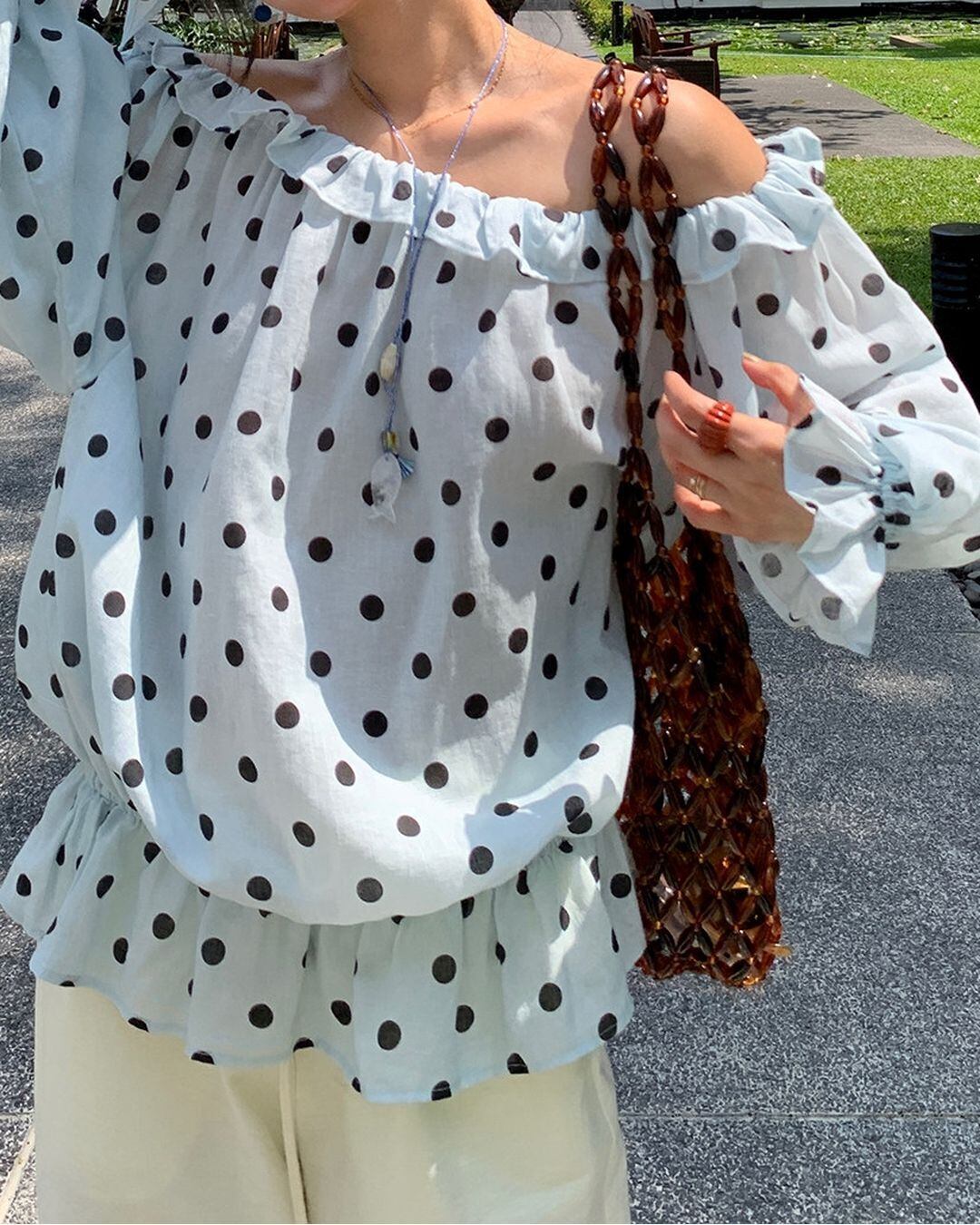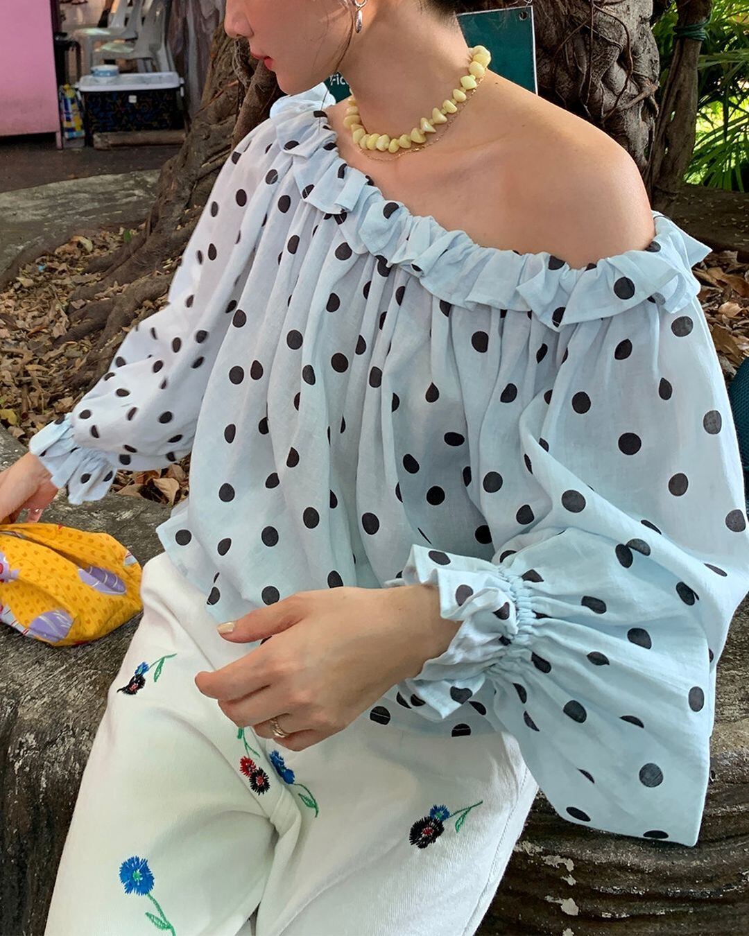 Dot Off-shoulder Blouse & Scalf V0173 ju