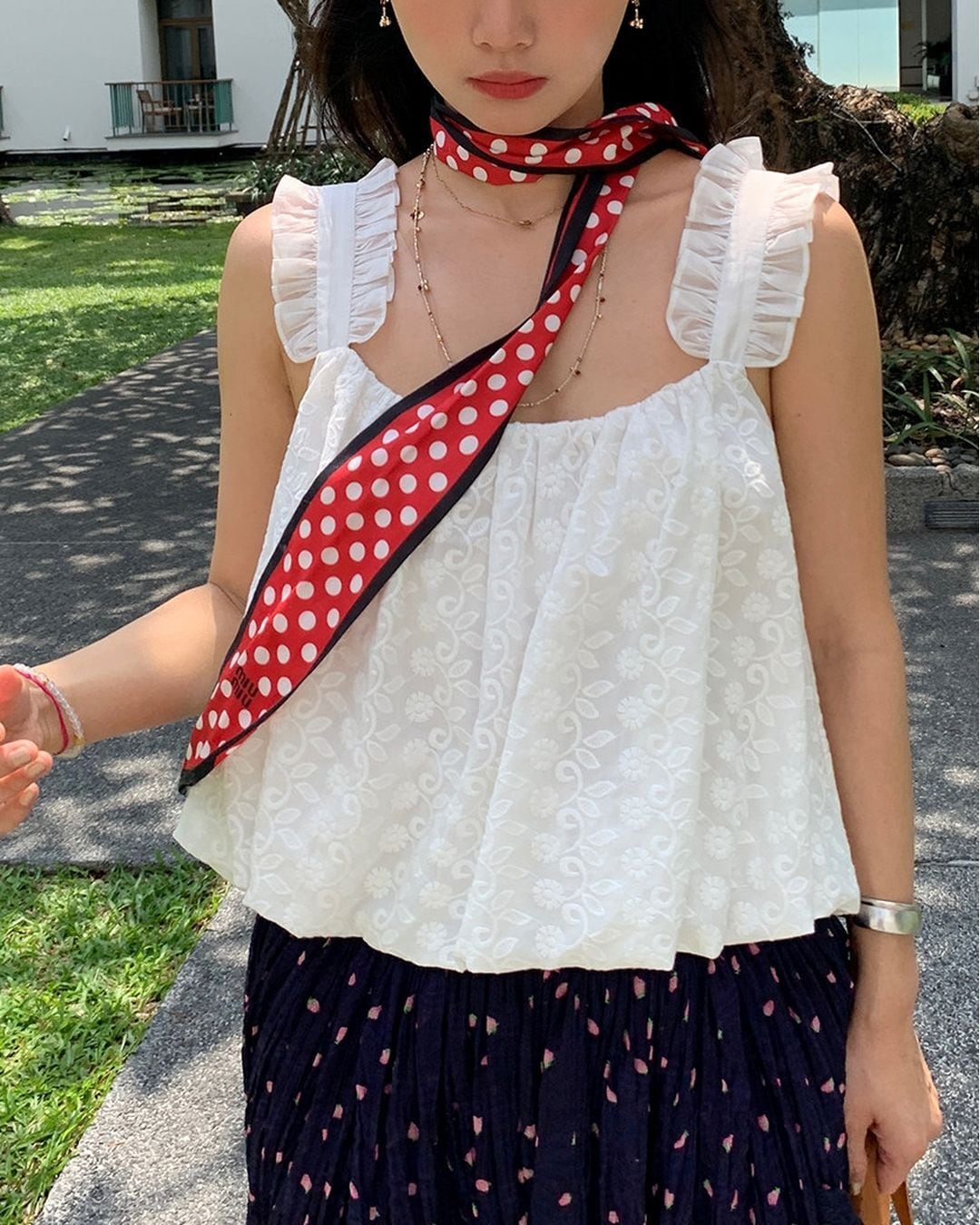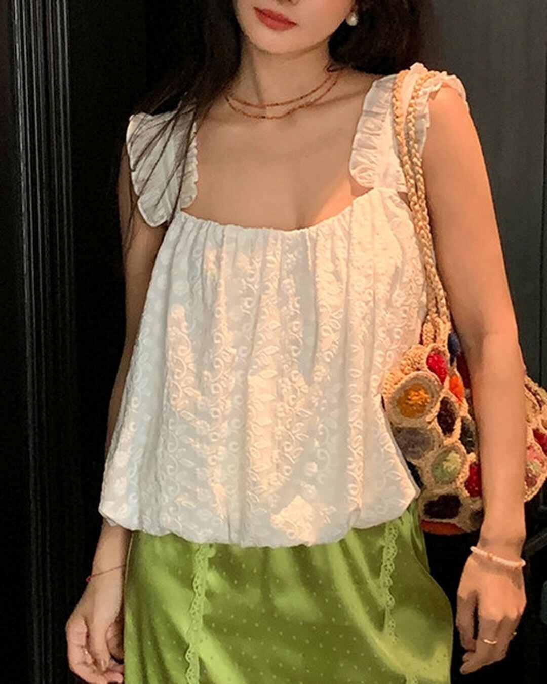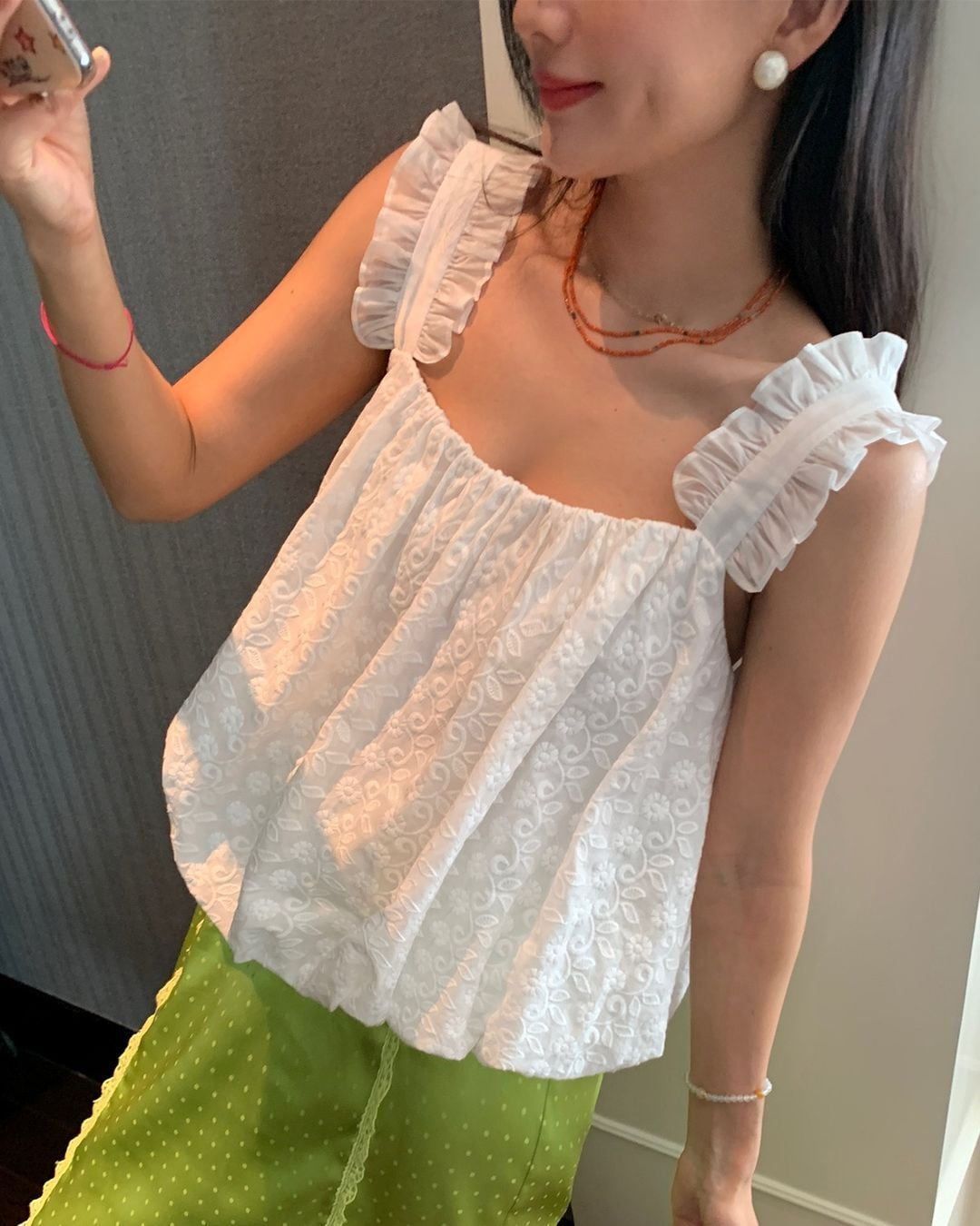 Lace & Frill Sleeveless Top V0174 ju