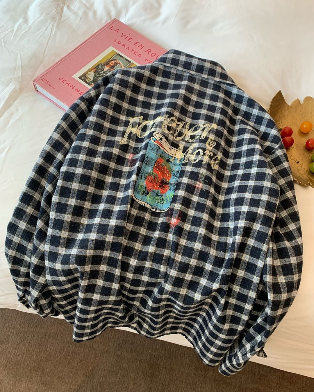 Back Graphic Check Shirt V0176 ju