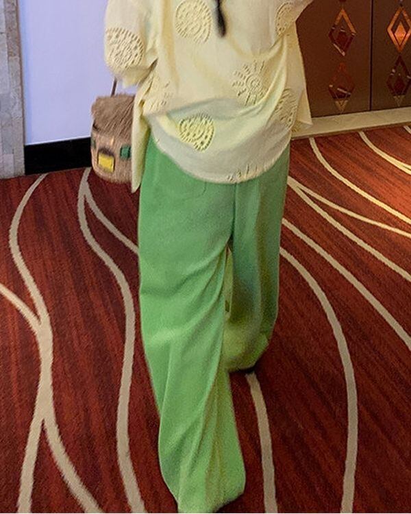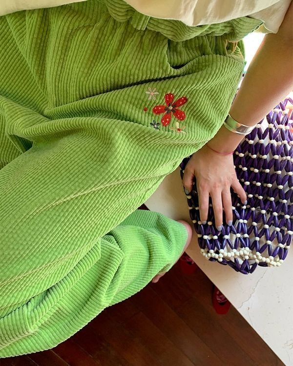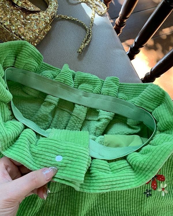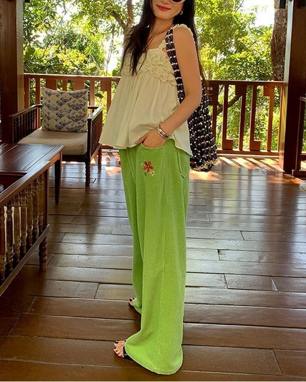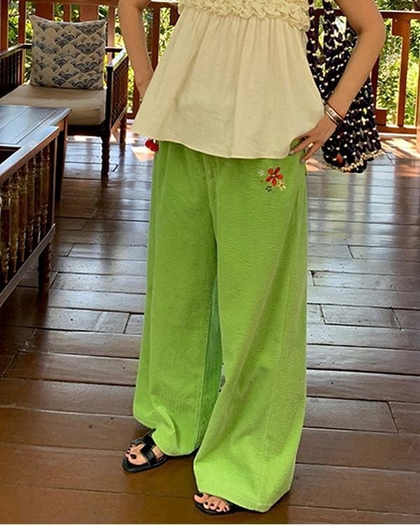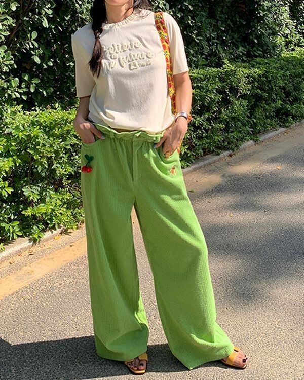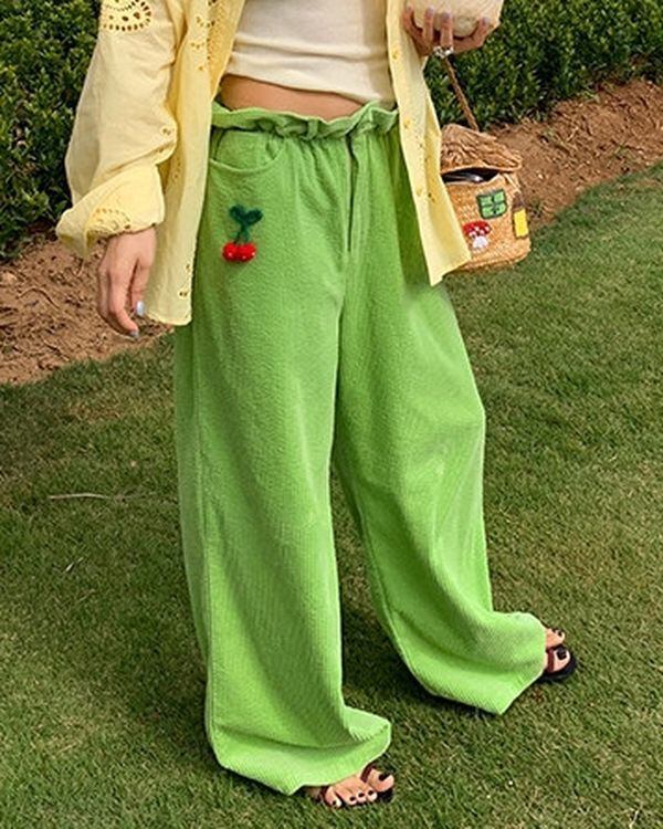 Floral & Cherry Embroidered Trim Pants V0221 ju