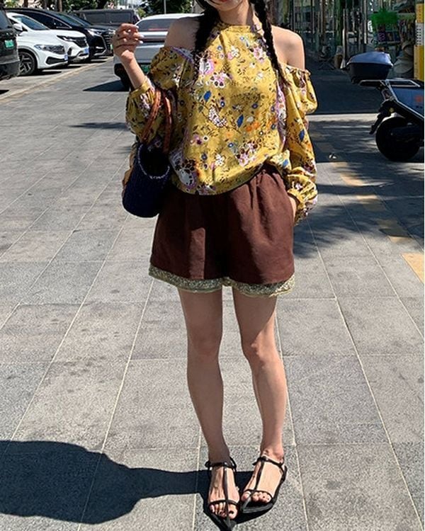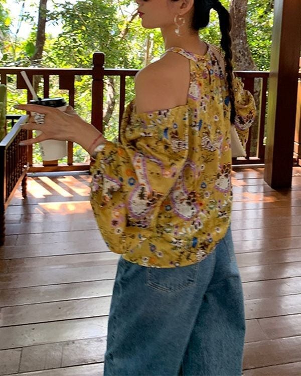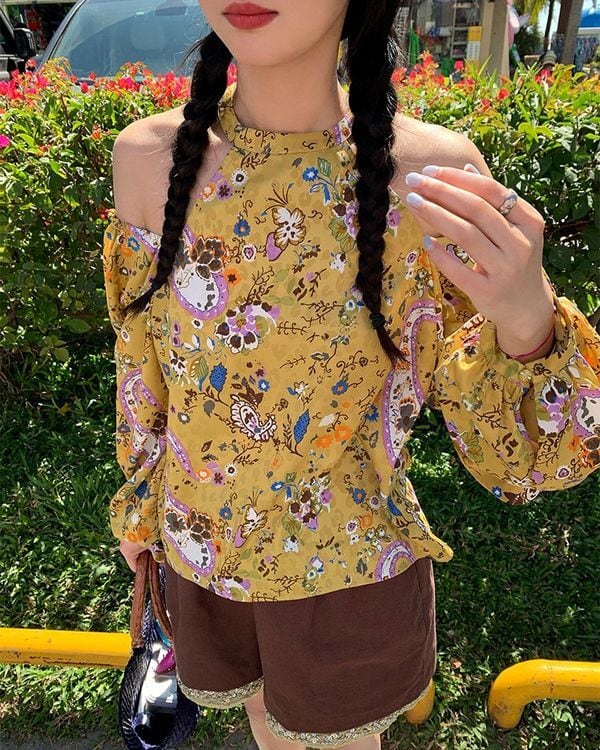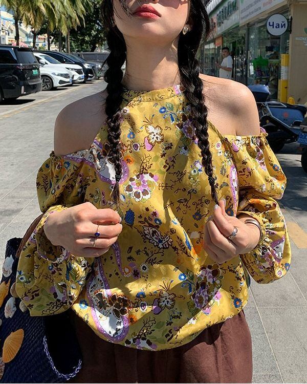 Floral Off-shoulder Blouse V0233 ju