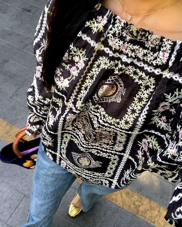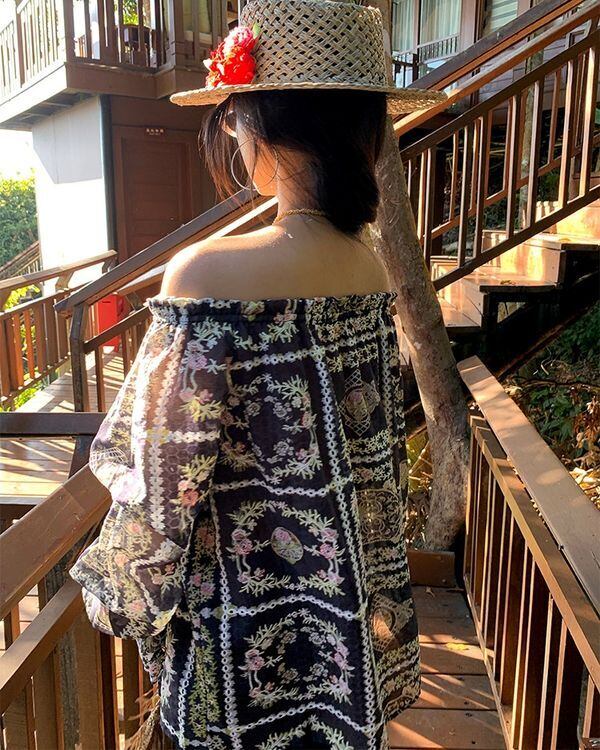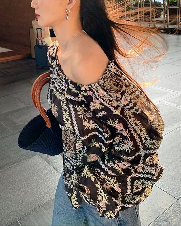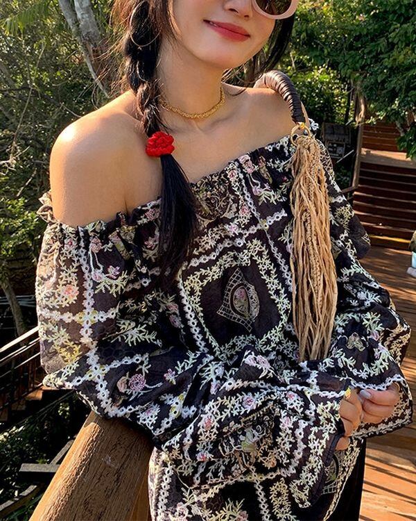 Floral Grid Off-shoulder Blouse V0237 ju