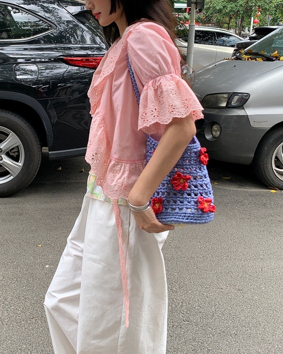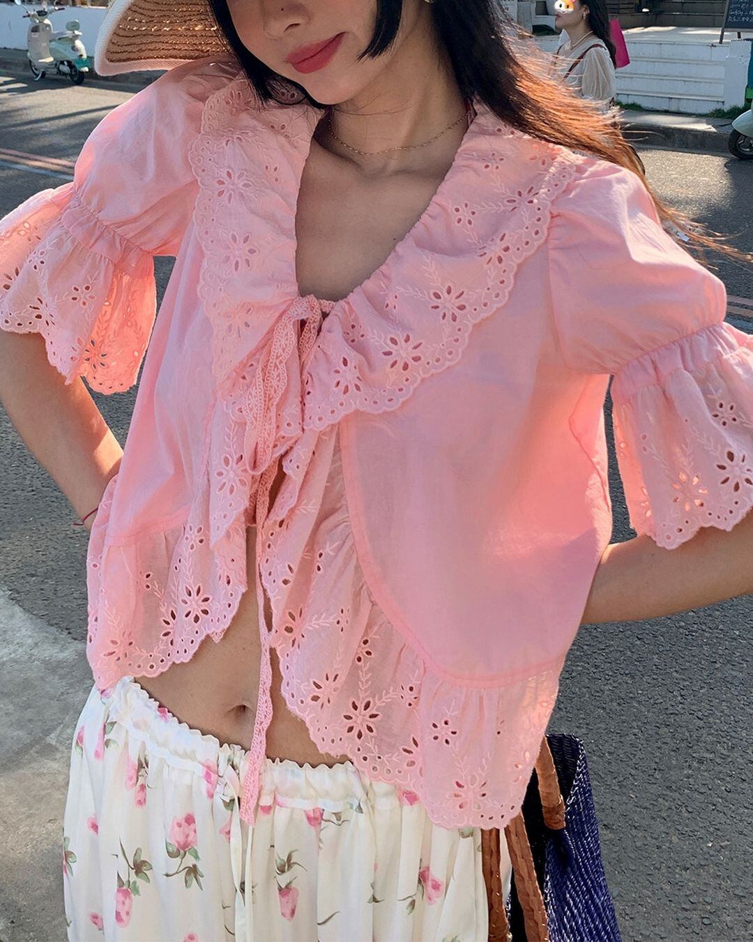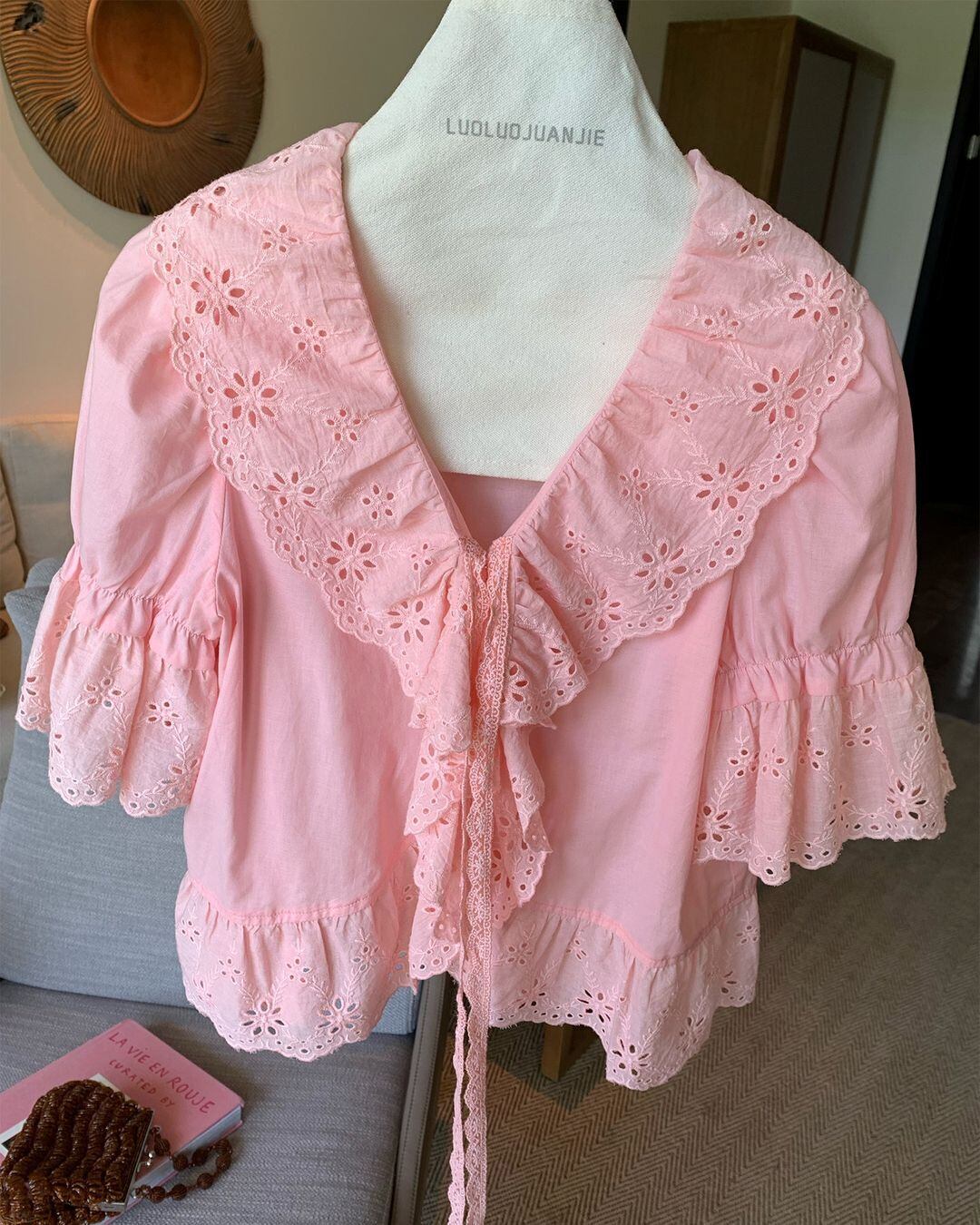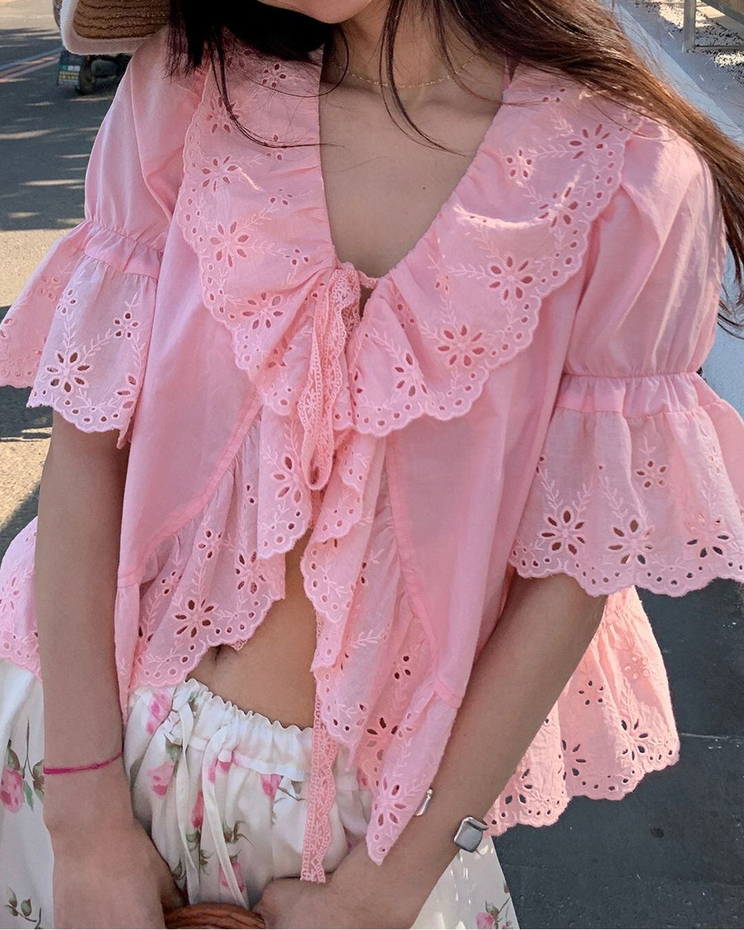 Embroidery Frill Riboon Blouse V0257 ju