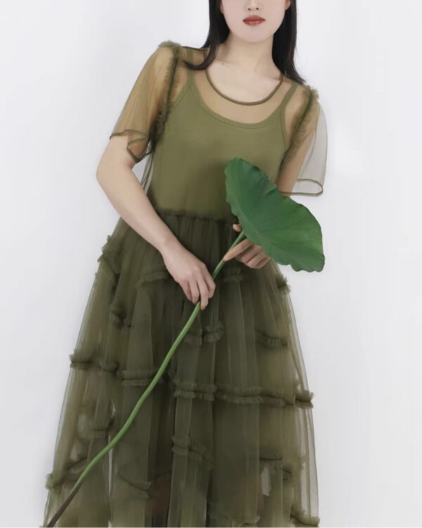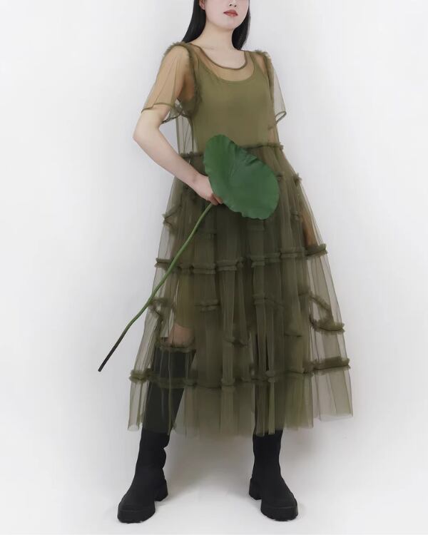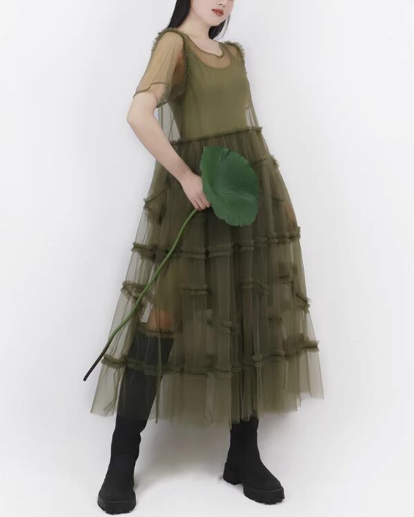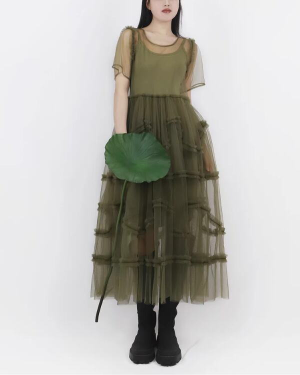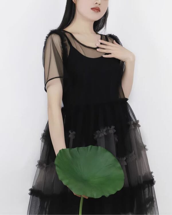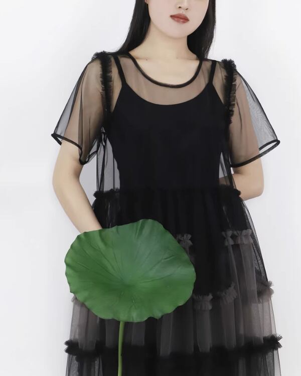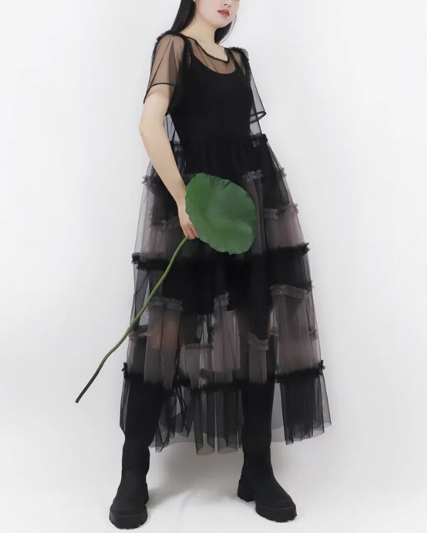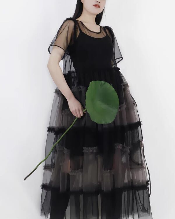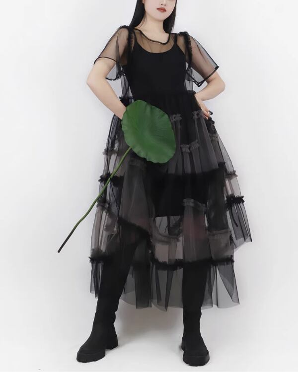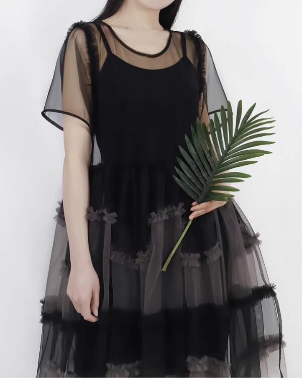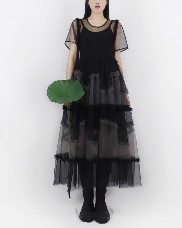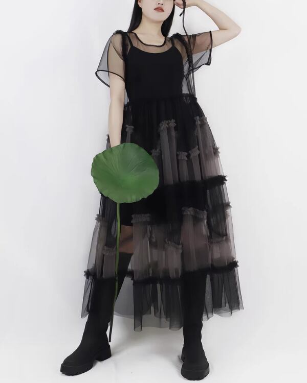Sheer Tulle Layered One‐piece V0193 te