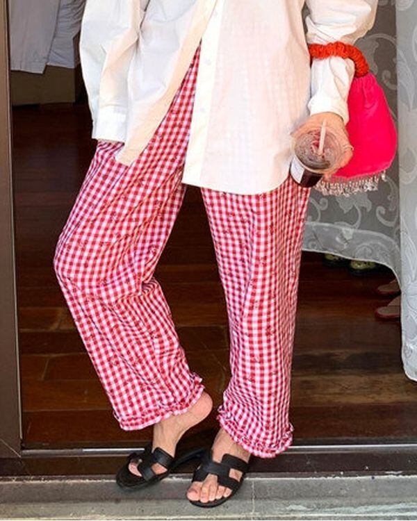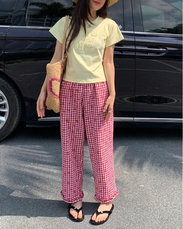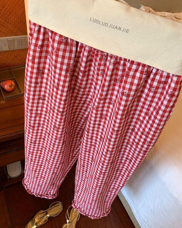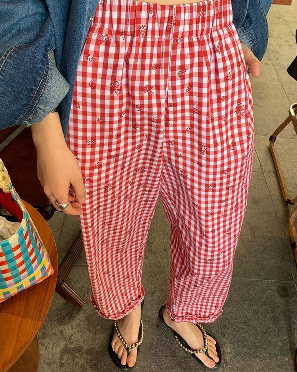 Check & Floral Pants V0428 ju