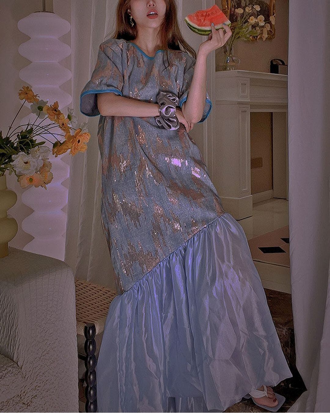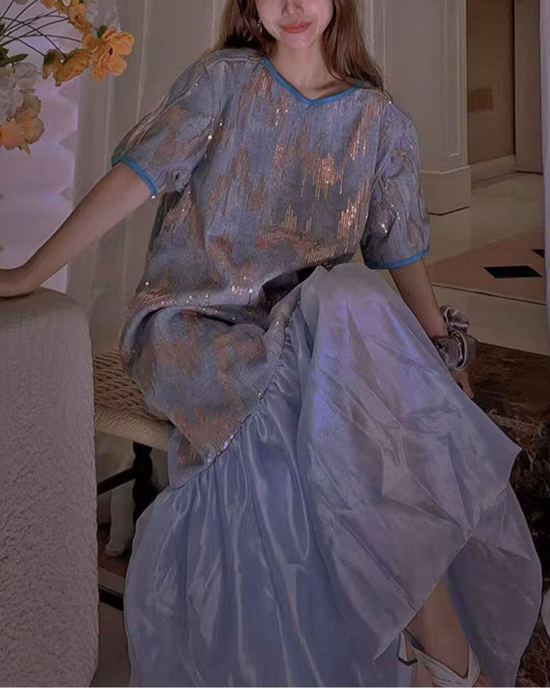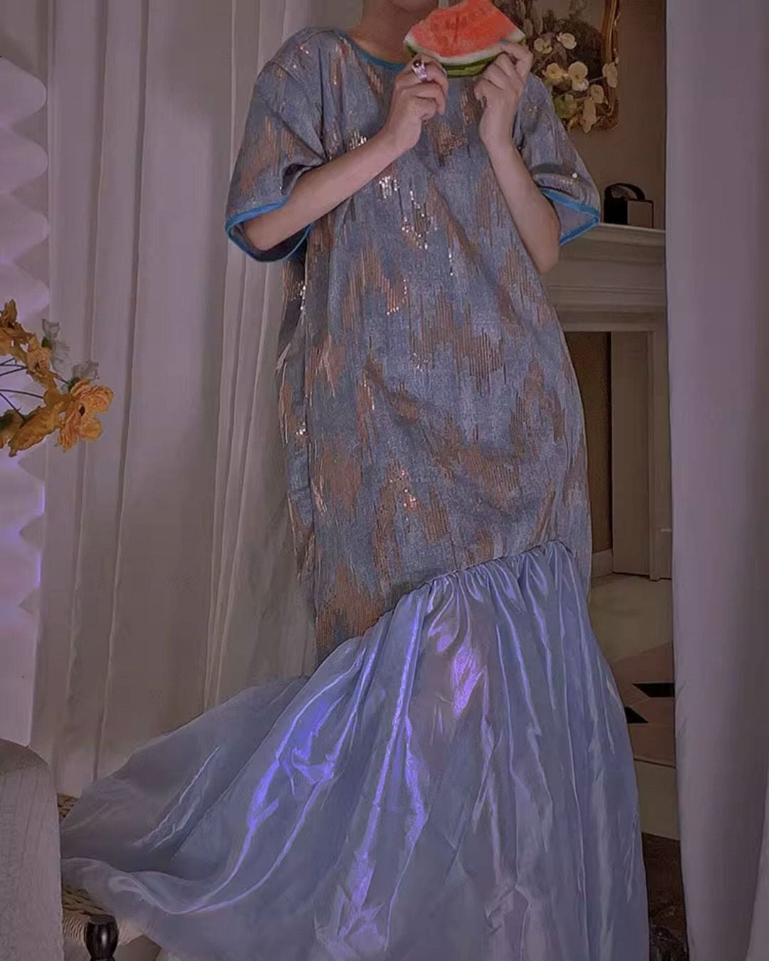 Sequin Embroidered Fishtail Maxi One-piece V0276 as