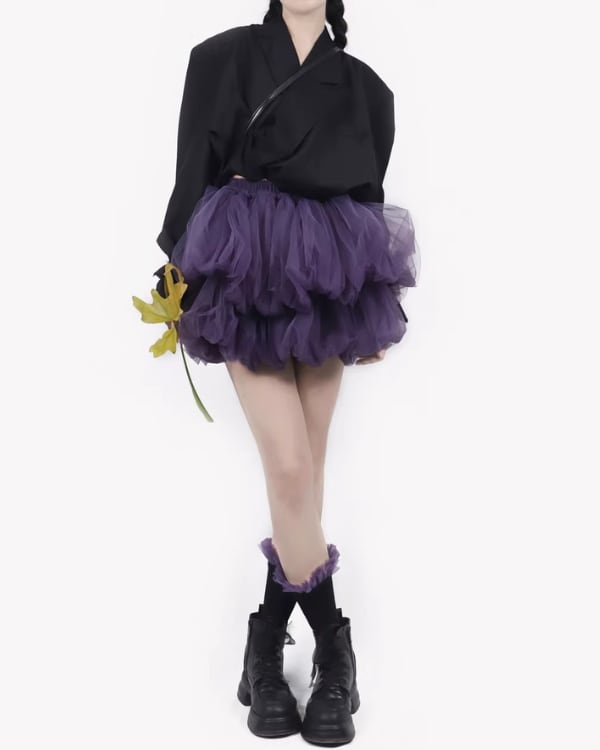 Voluminous Tulle Tiered Mini Skirt V0201 te