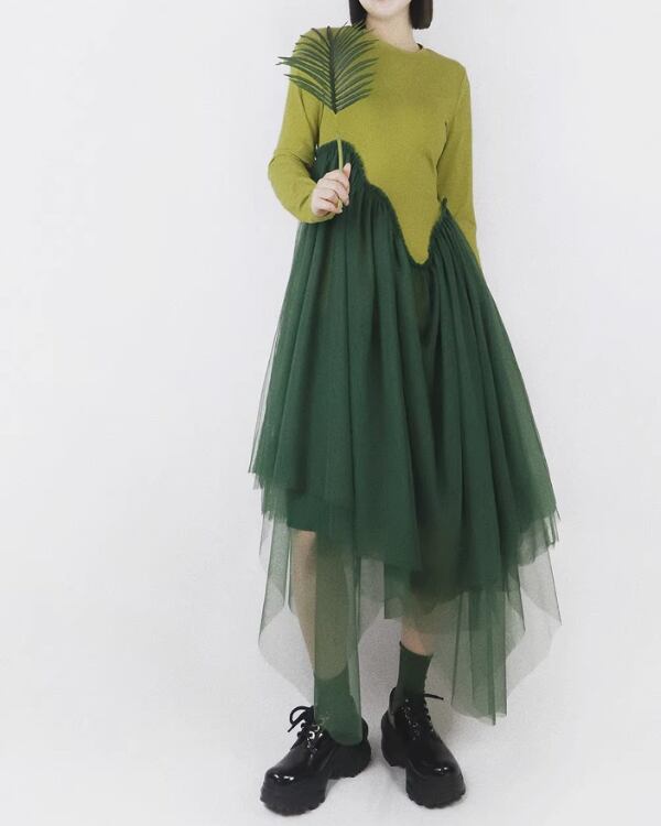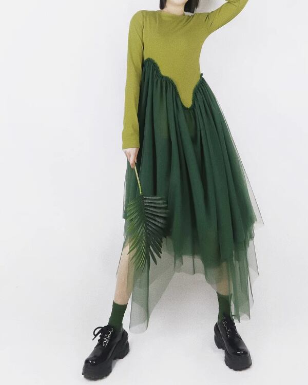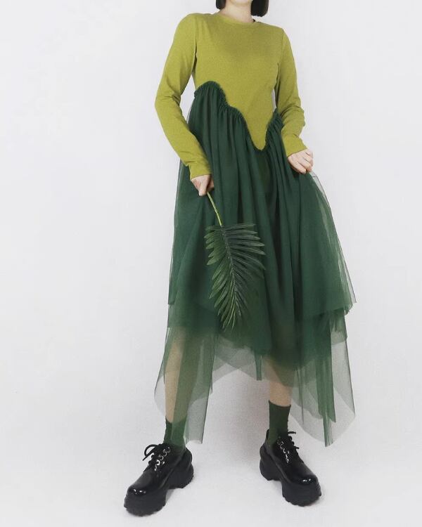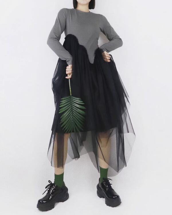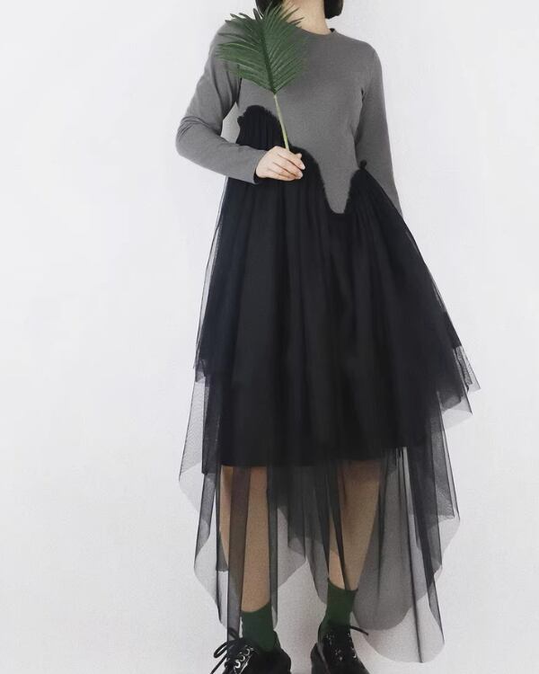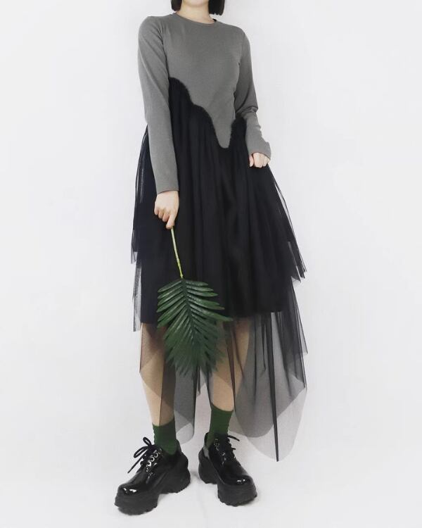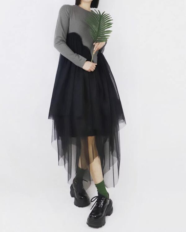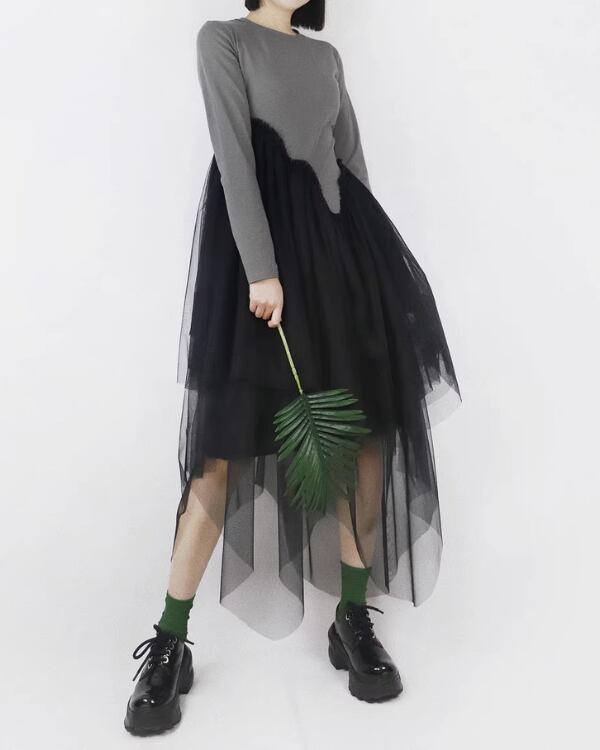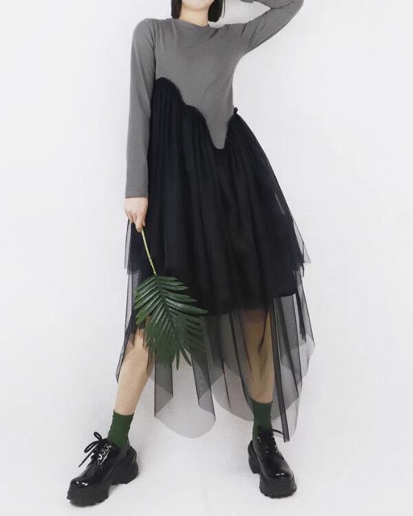 Asymmetric Tulle Layered Midi One-piece V0204 te