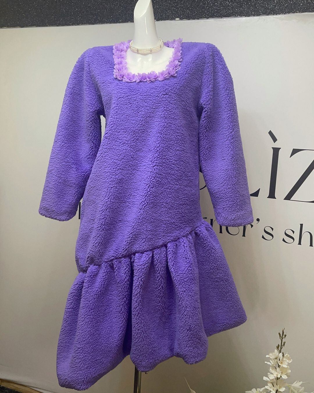 Flower Collar Fleece One-piece V0307 as