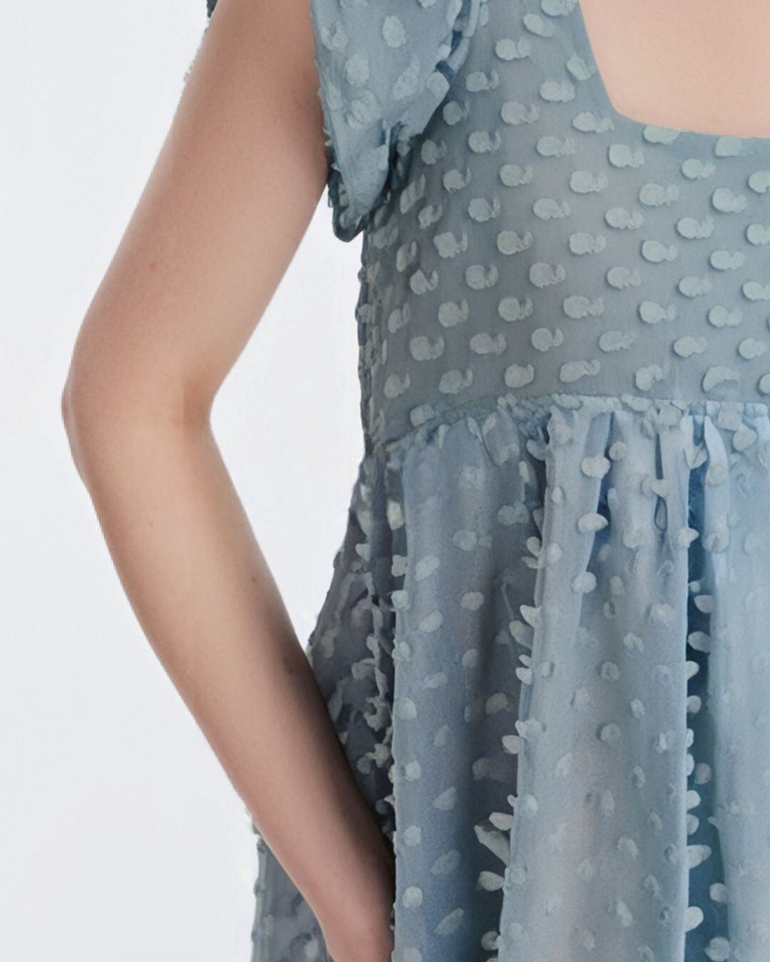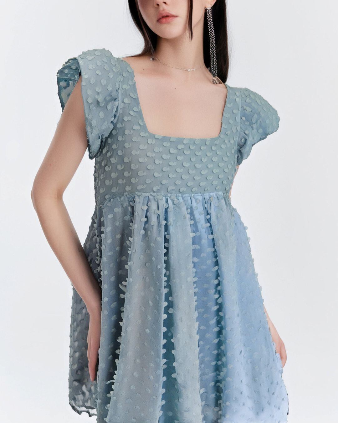Texturerd Puff-sleeve Mini One-piece V0312 as