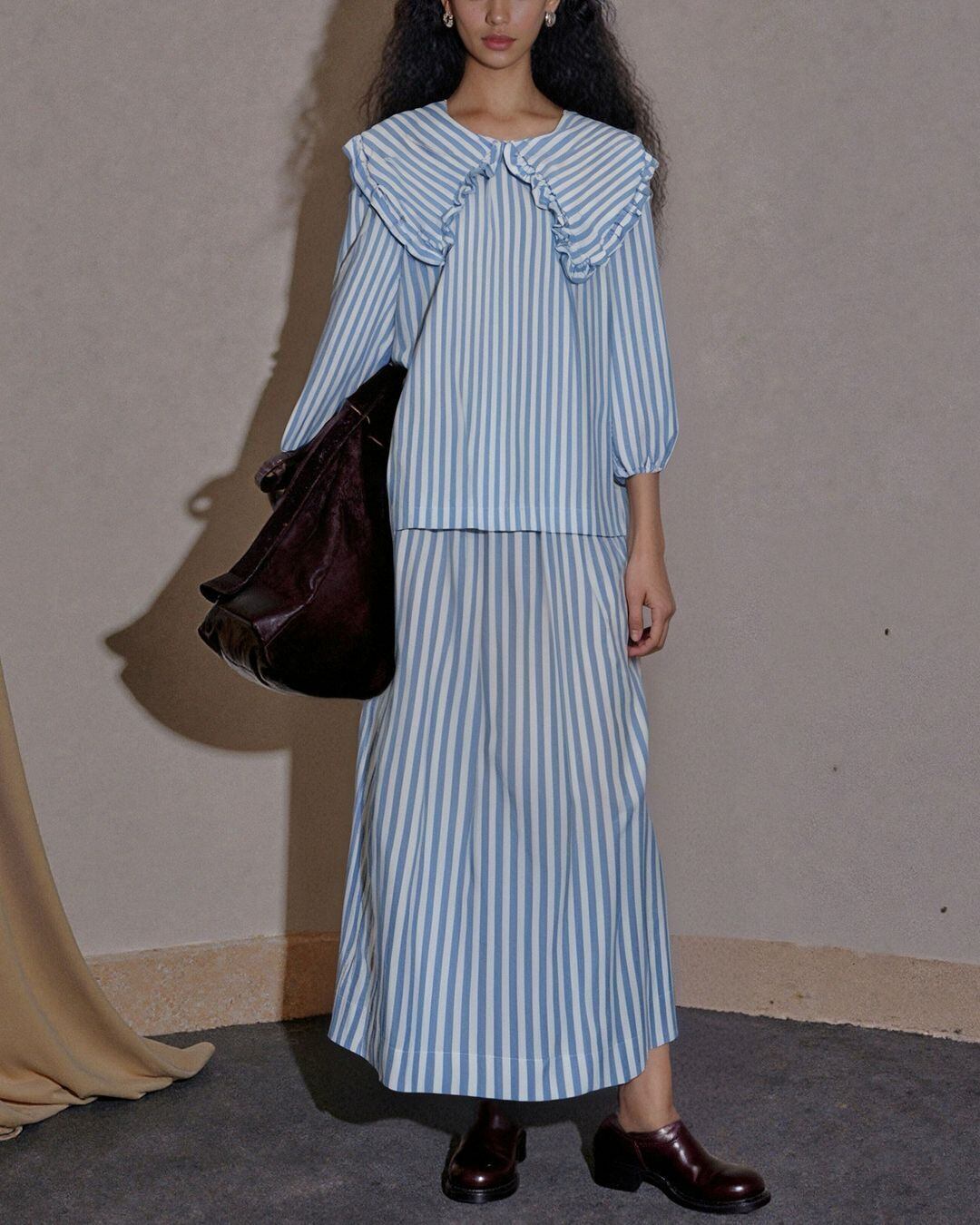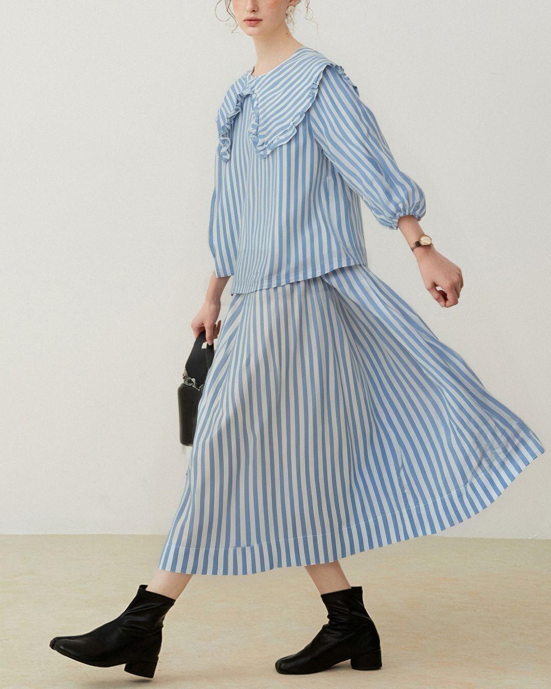 【Set-up】Stripe Blouse & Long Skirt V0313 as