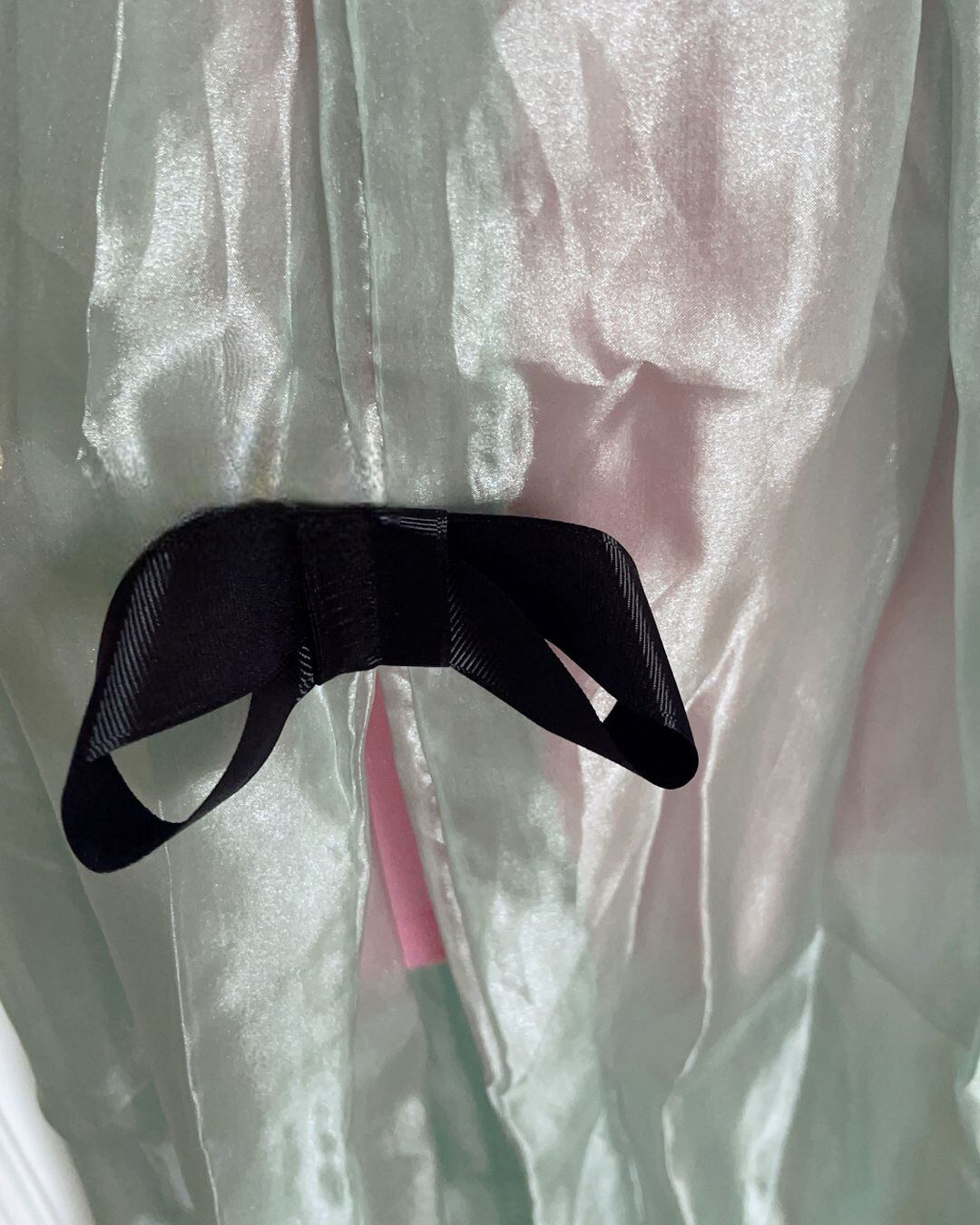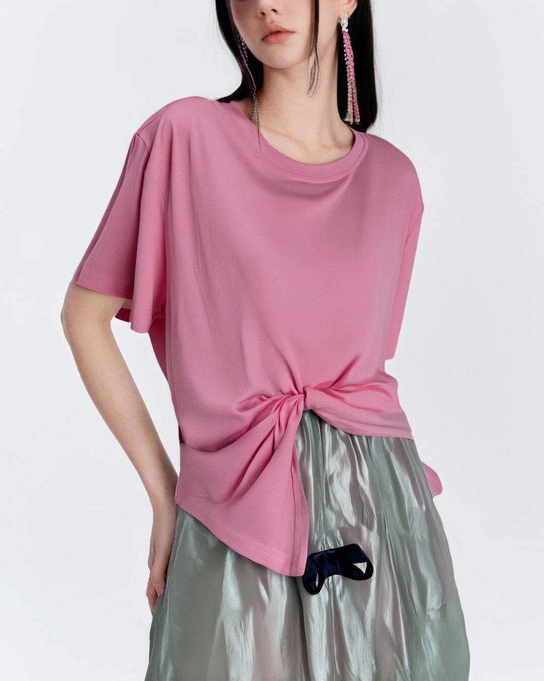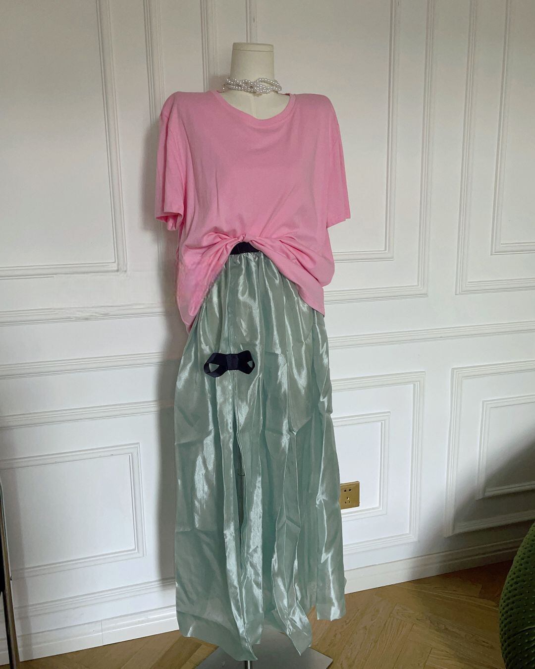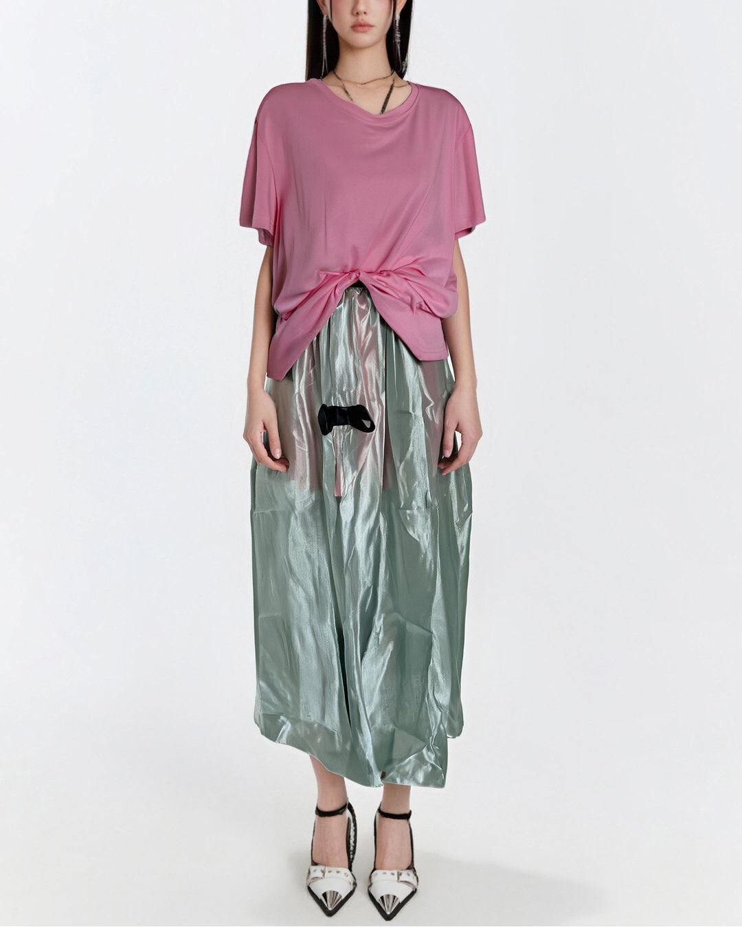 【Set-up】Twist T-shirt & Ribbon Sheer Skirt V0315 as
