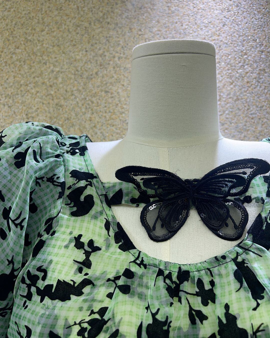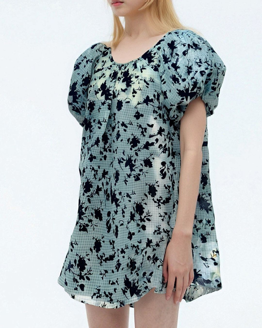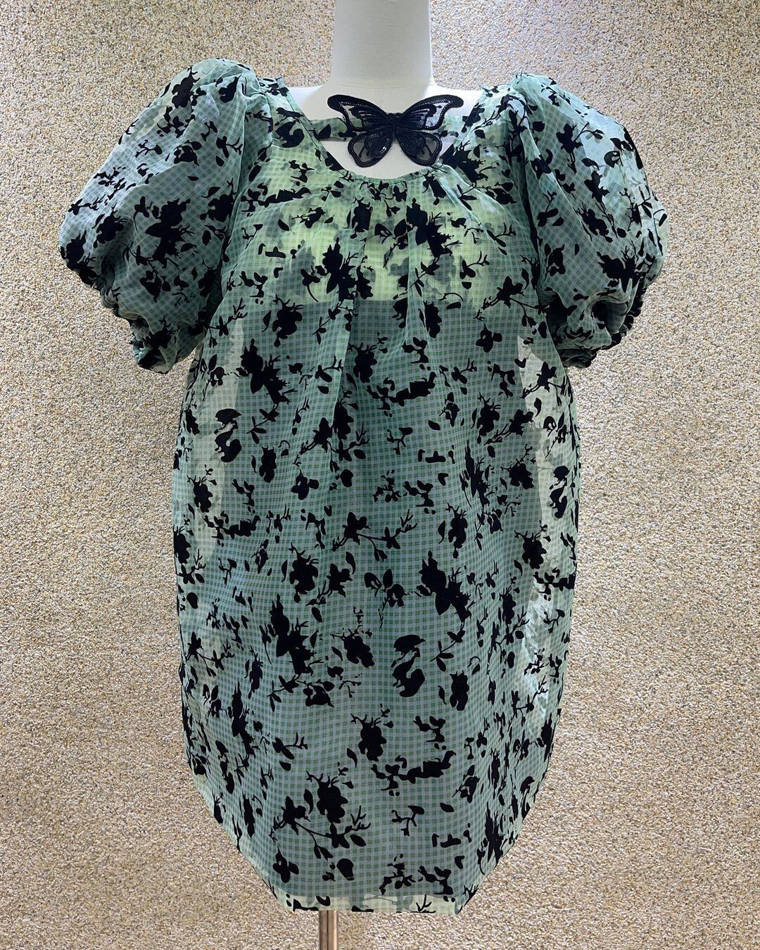 Emberoidered Mesh Layered Check Mini One-piece V0317 as