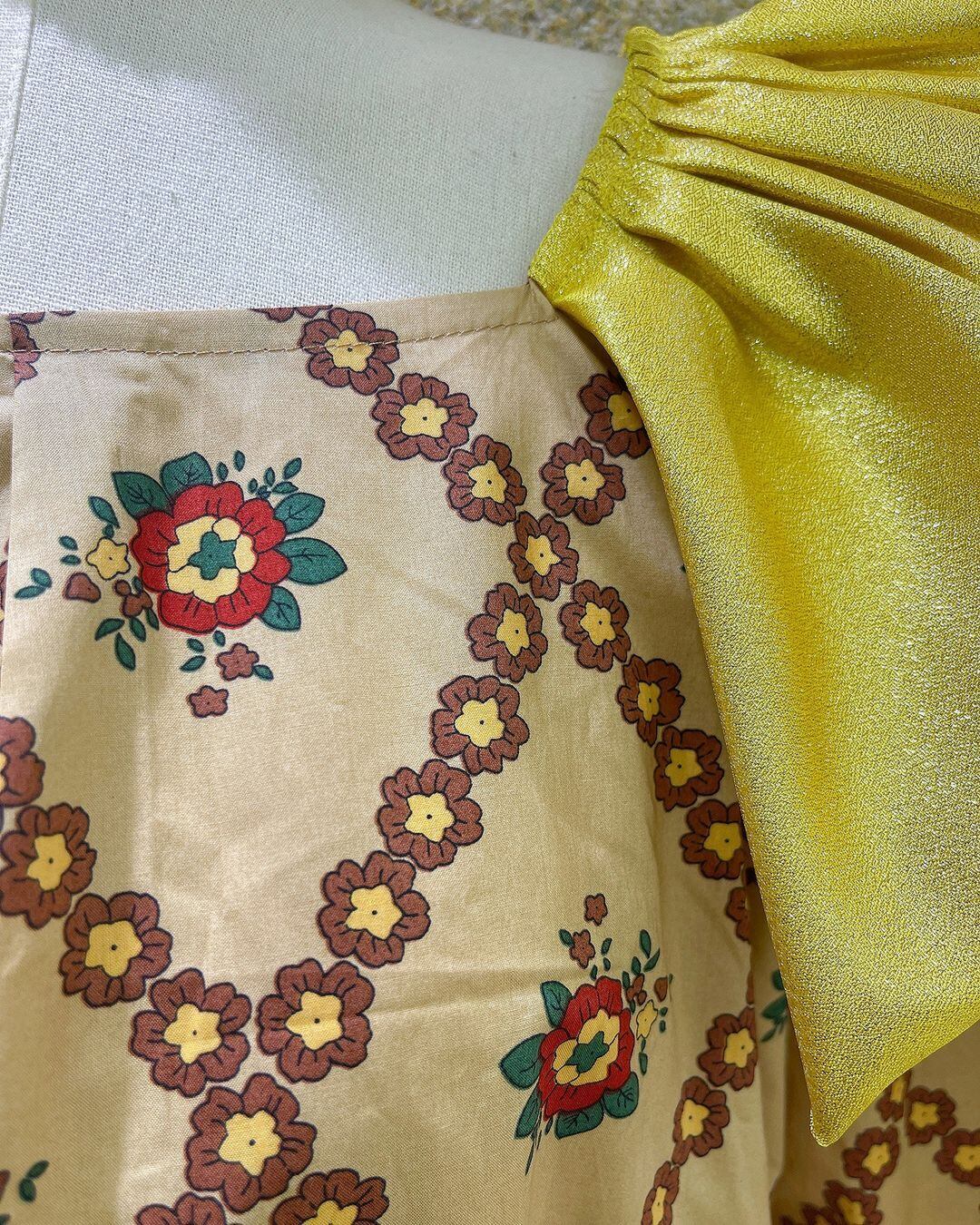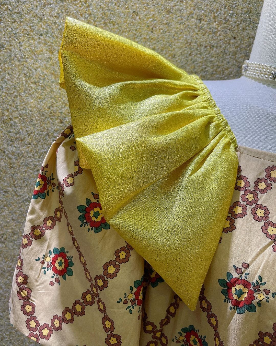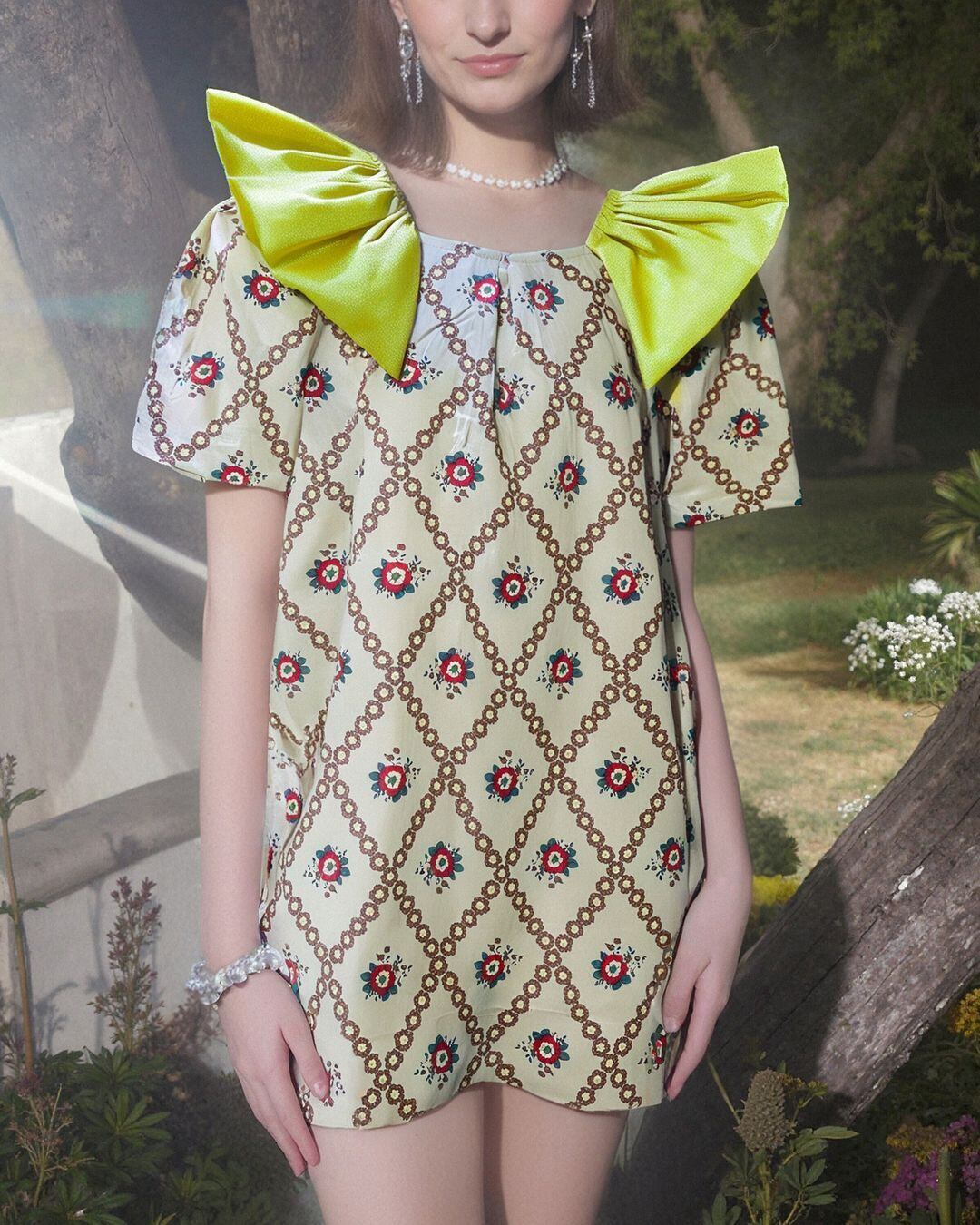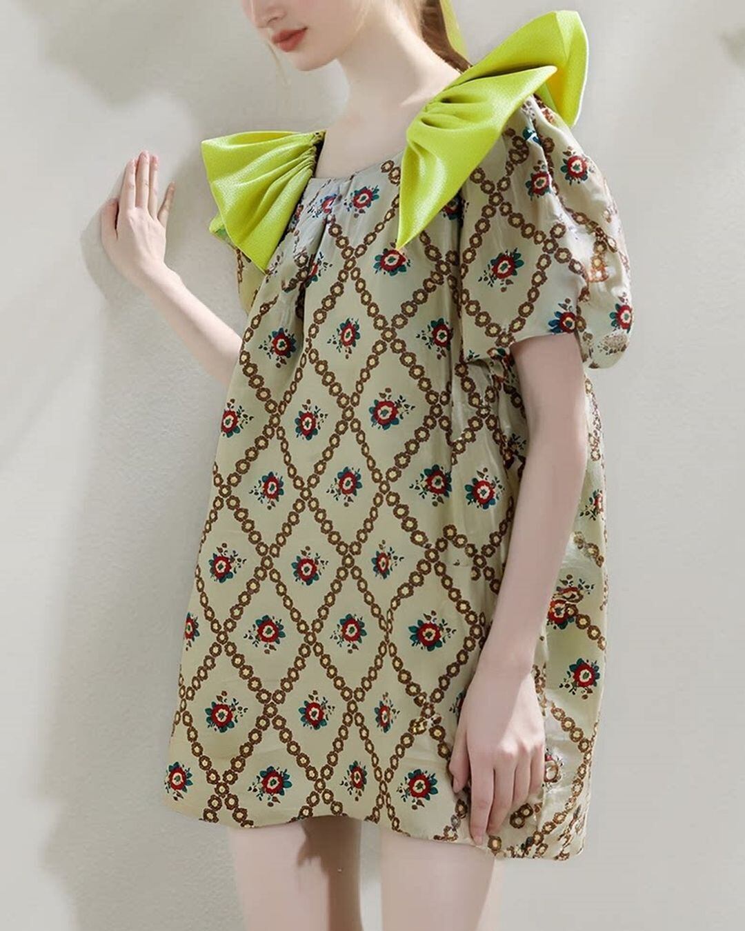 Contrast Frill Grid Floral Mini One-piece V0332 as