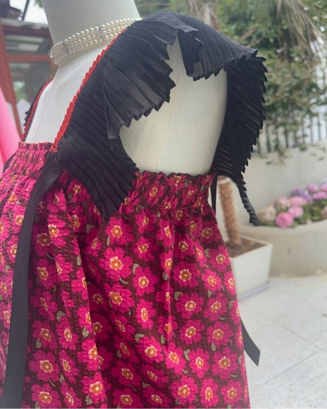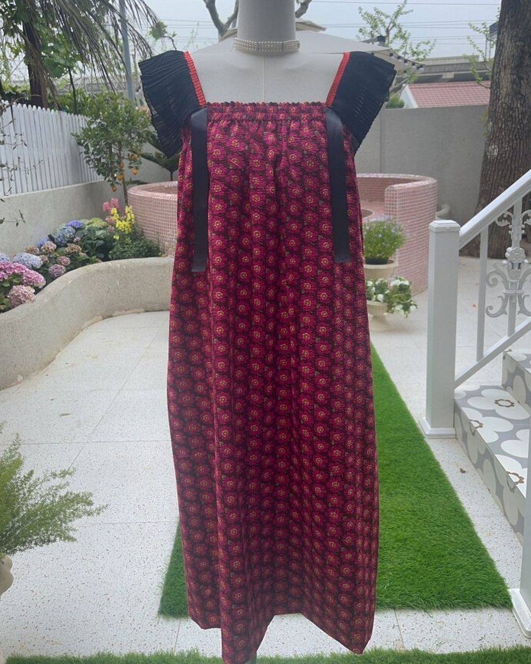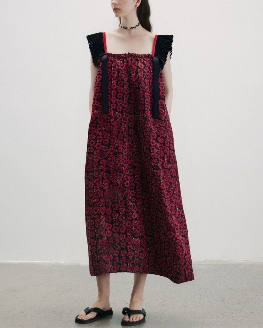 Pleats Frill Sleeve Floral One-piece V0337 as