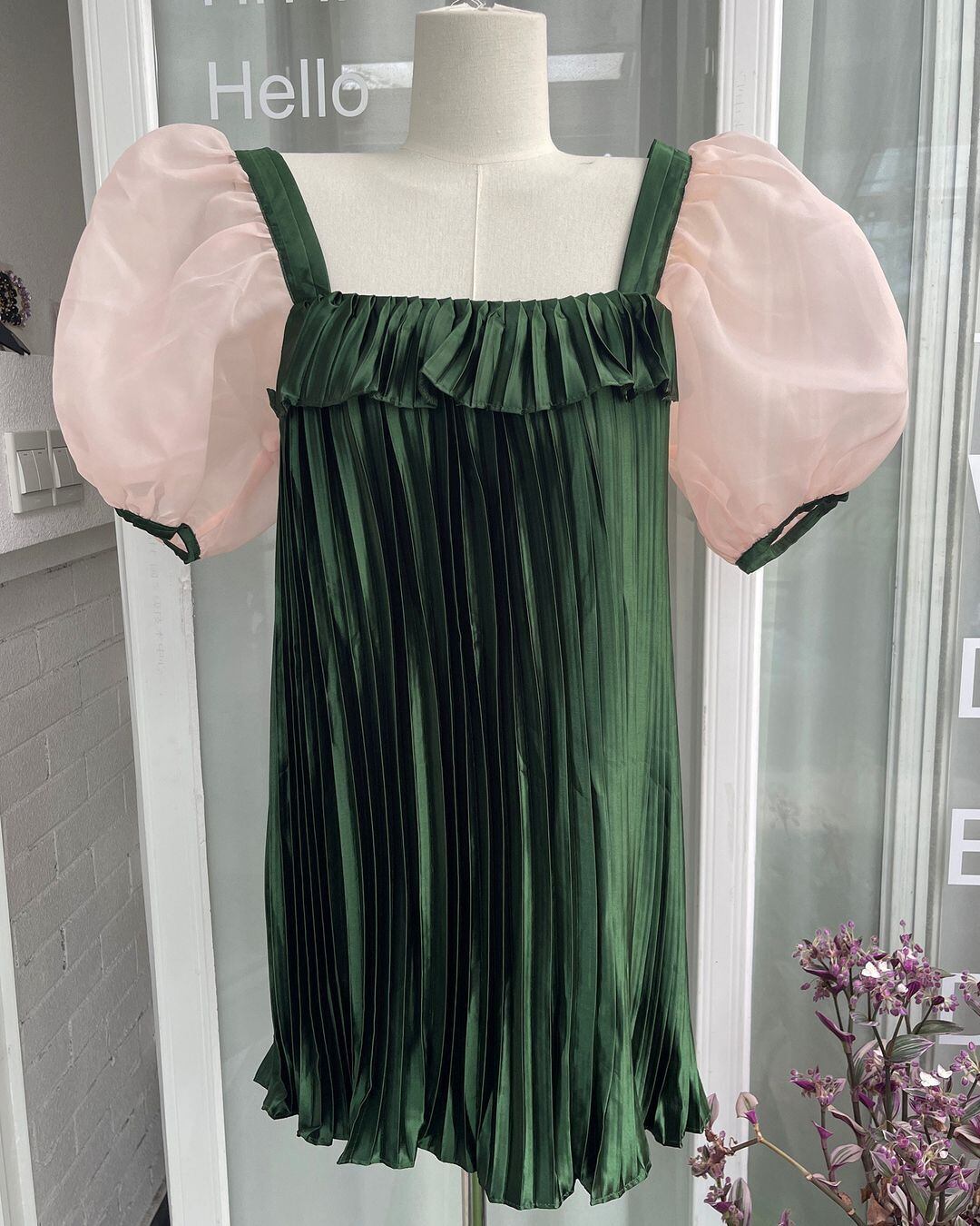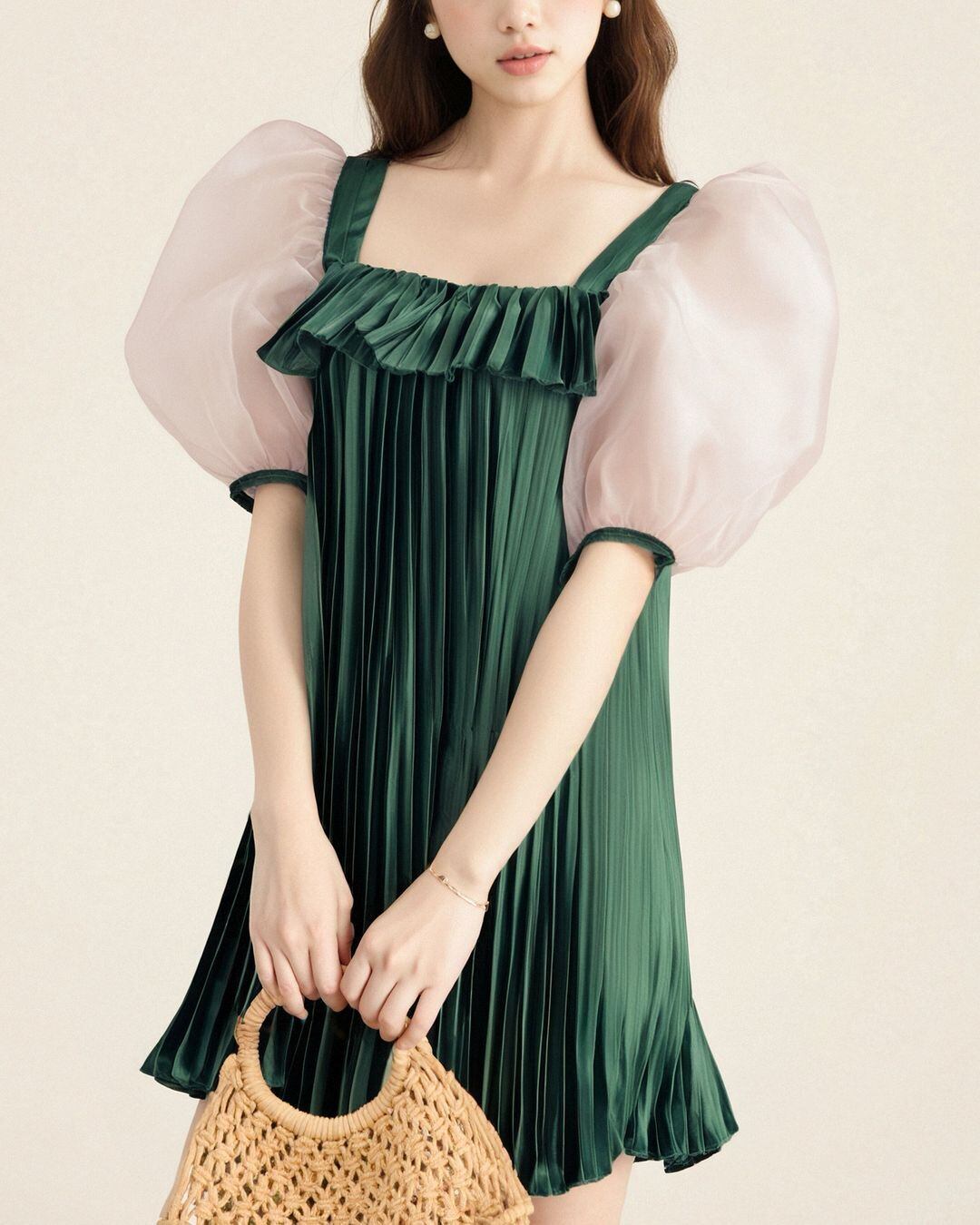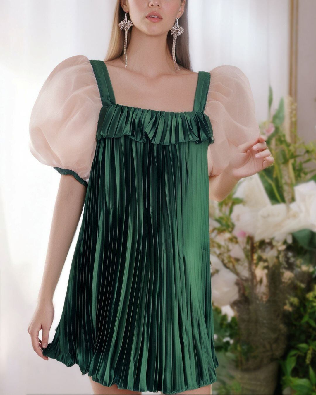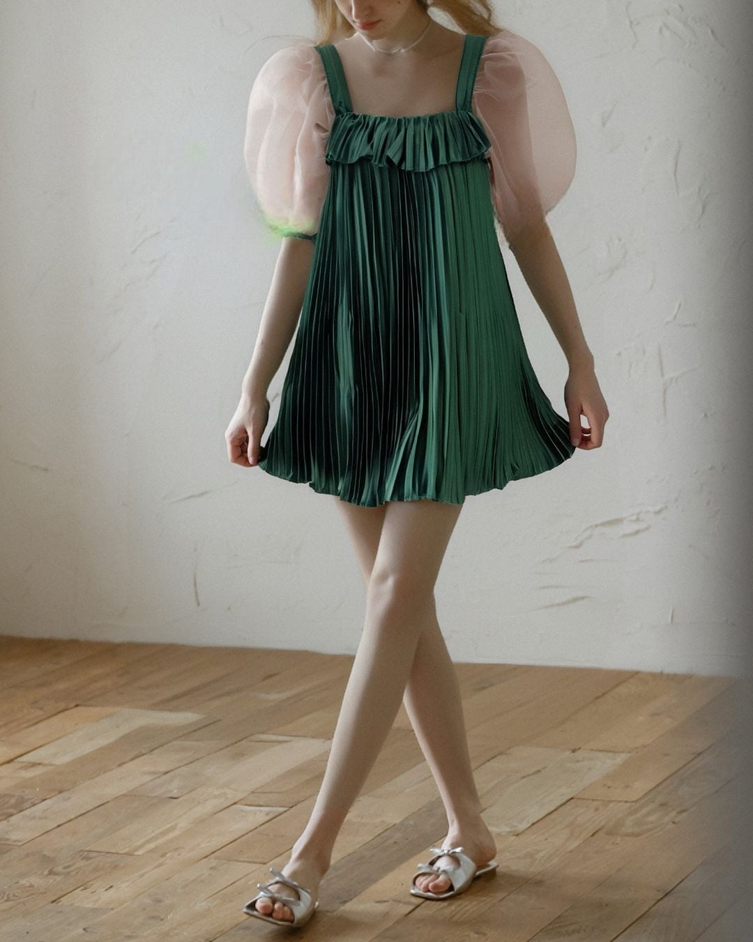 Sheer Sleeve Pleats Mini One-piece V0344 as