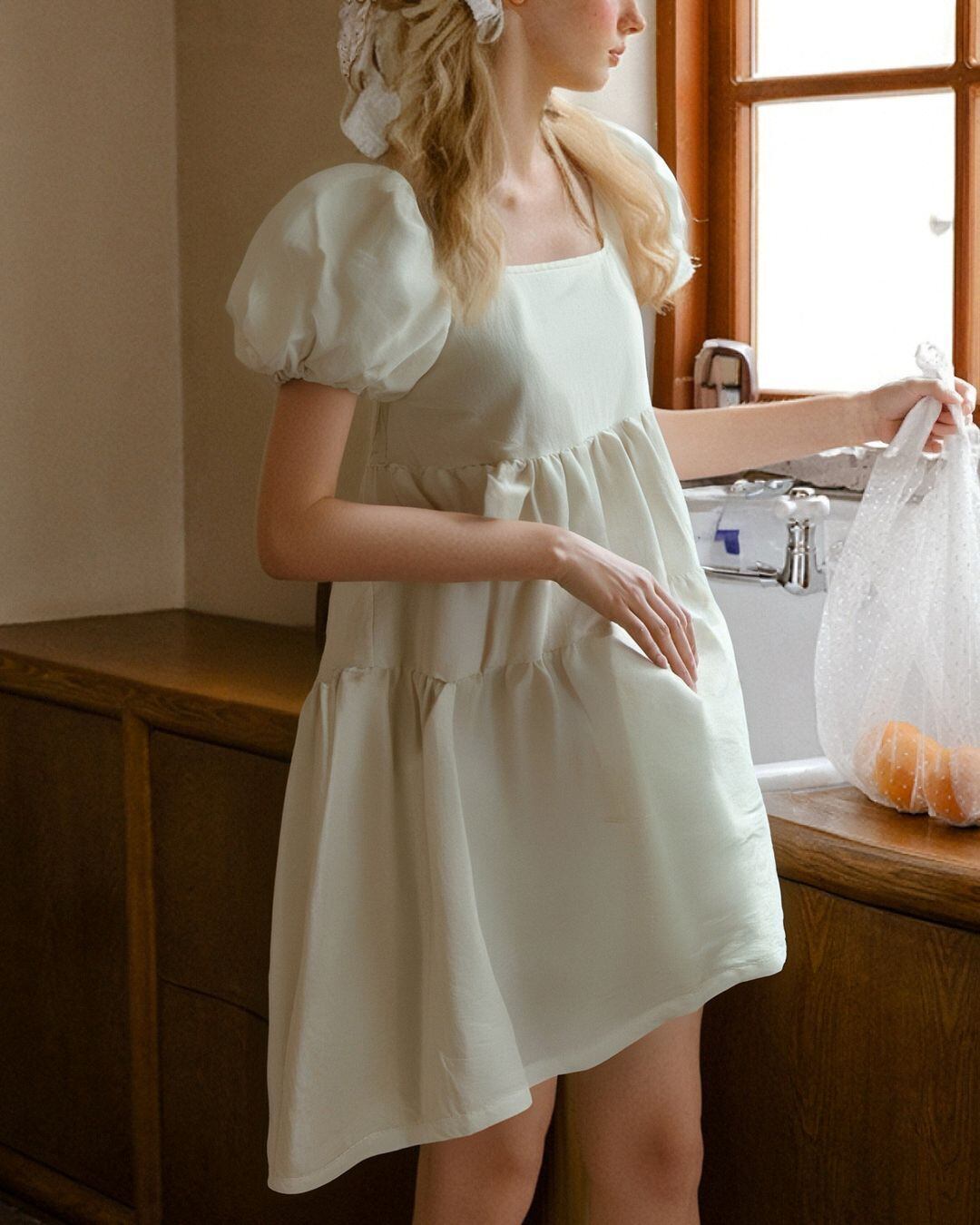 Baloon Sleeve Mini Fishtail One-piece V0349 as