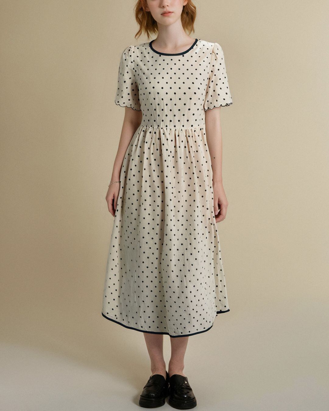 Waist Tie Dot One-piece V0351 as