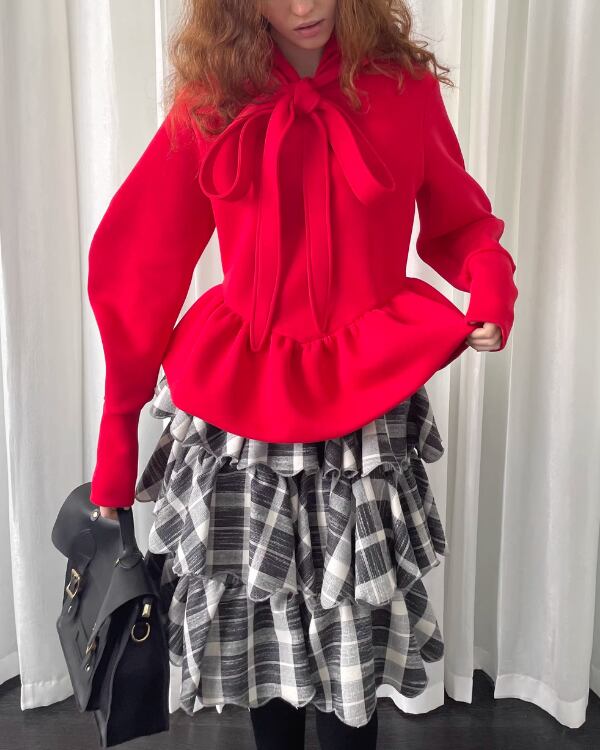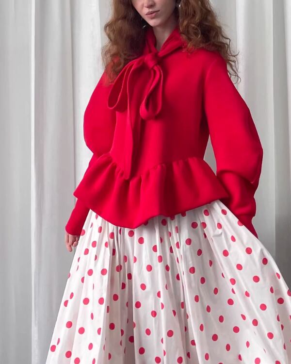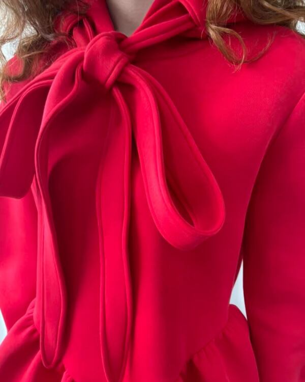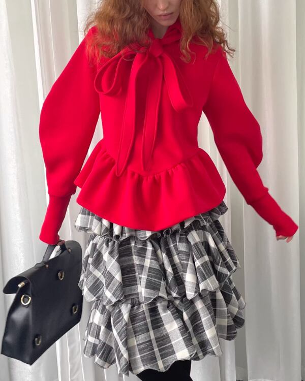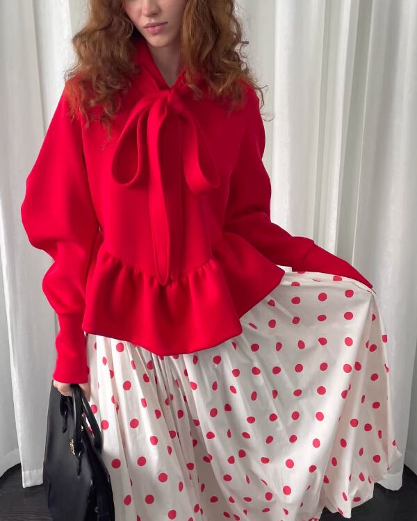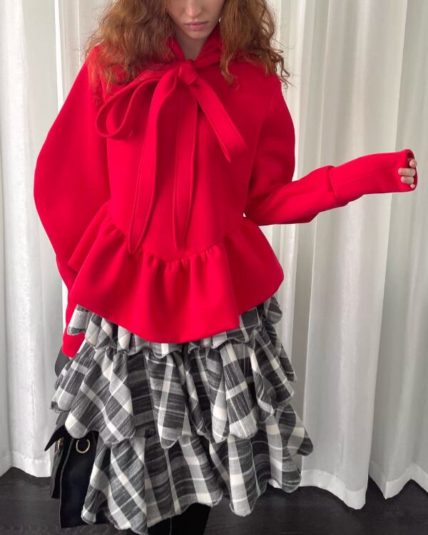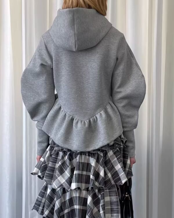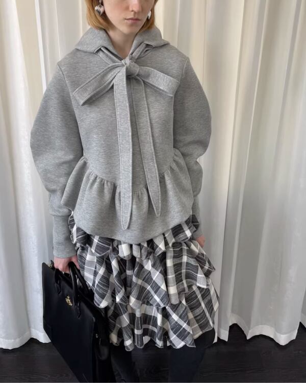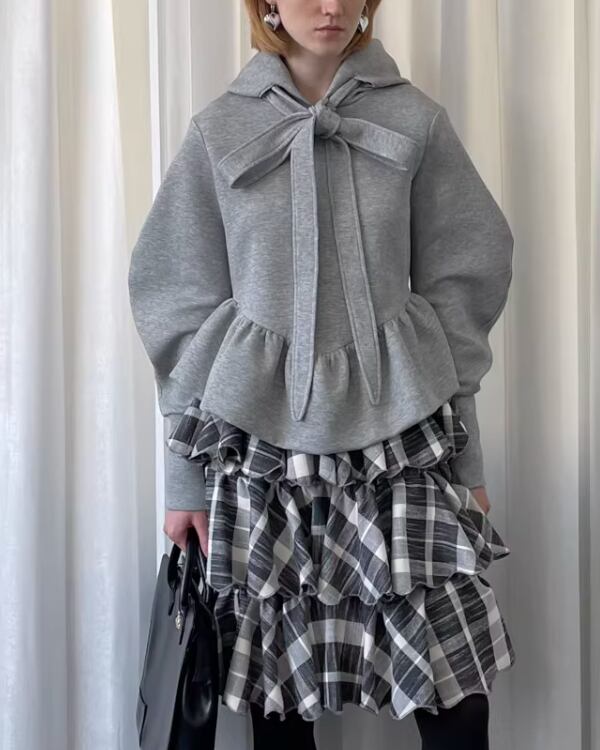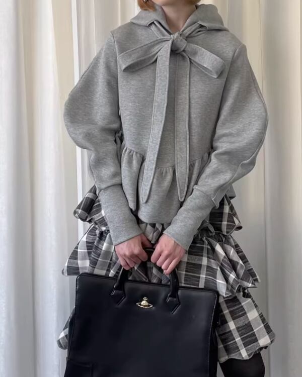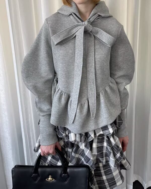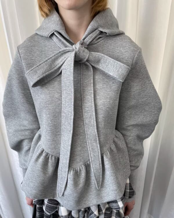 ※セラーイニシャル無し Big Bow Volume Sleeve Peplum Hoodie V0360