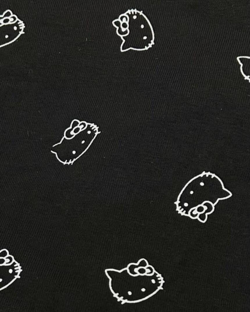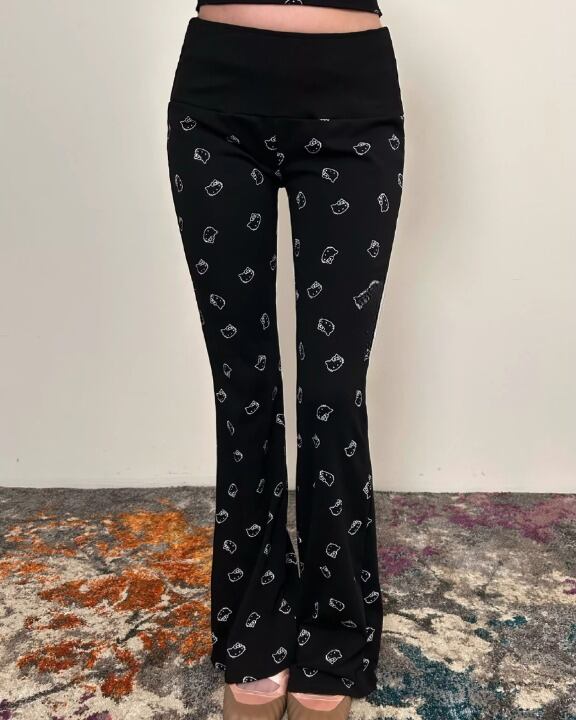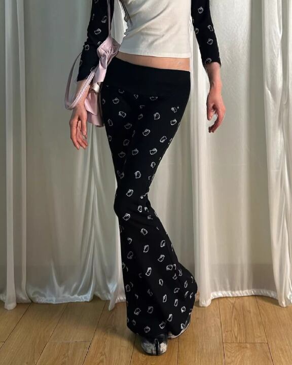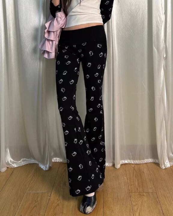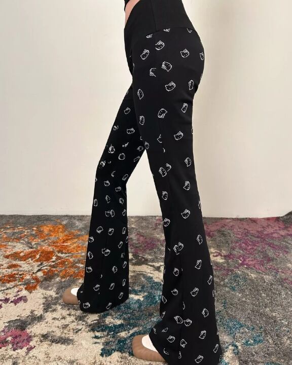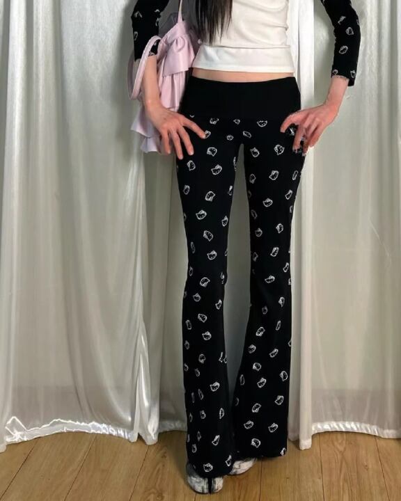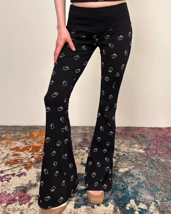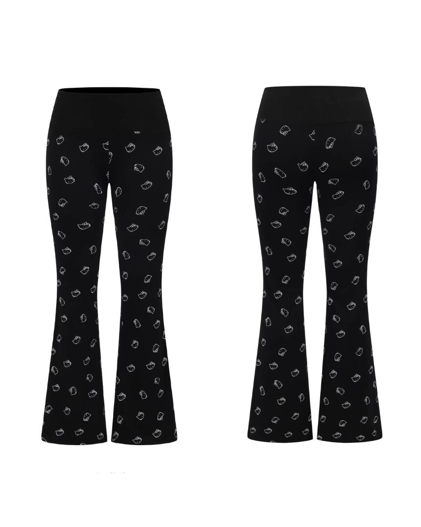 Cat Motif Stretch Flare Bootcut Pants V0362 be