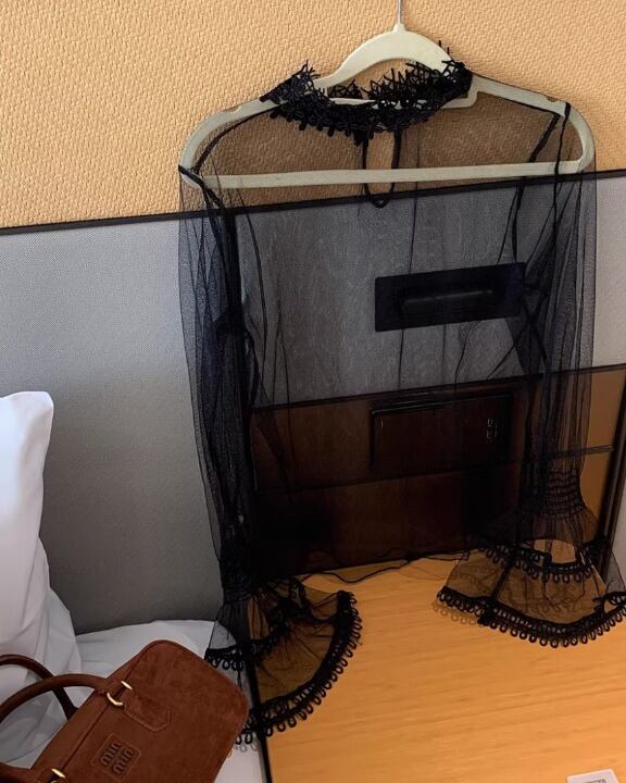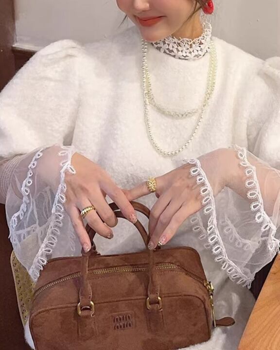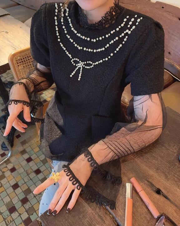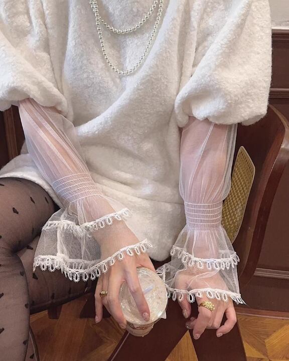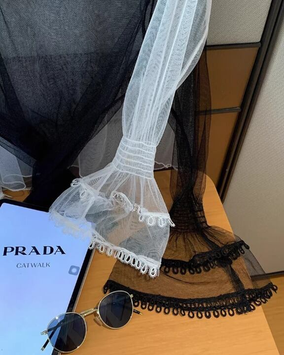 Flare Sleeve High-Neck Tulle Blouse V0364 sh