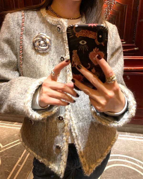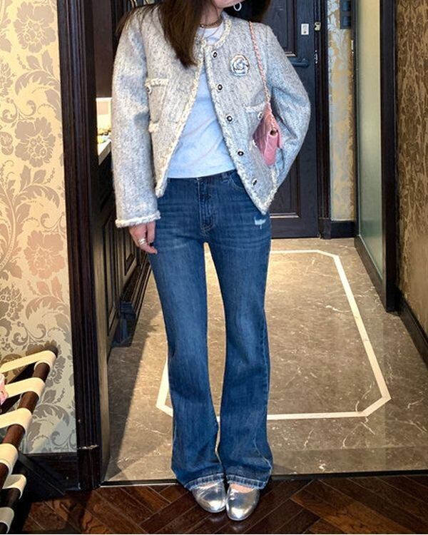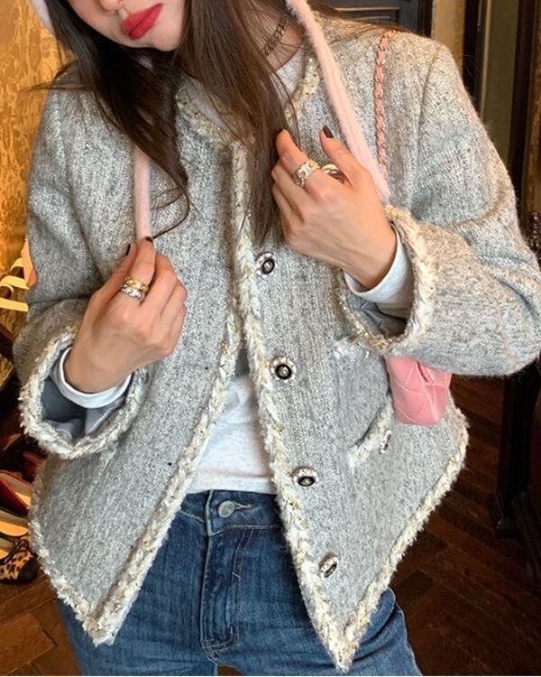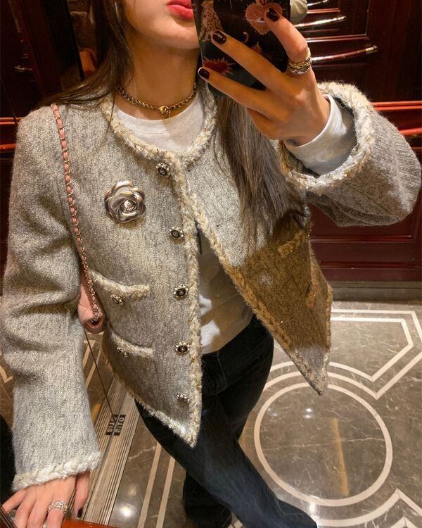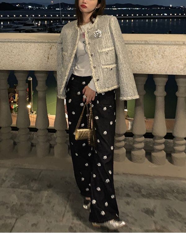 Metal Flower Tweed Jacket V0437 ju
