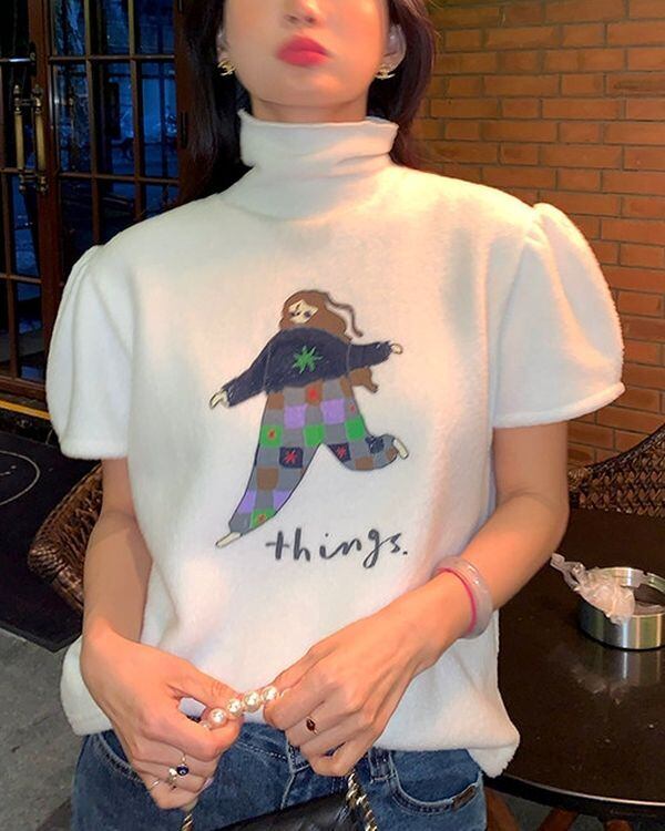 Graphic High-neck Pullover V0440 ju