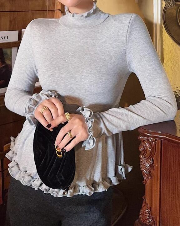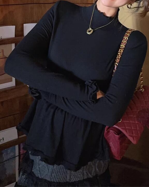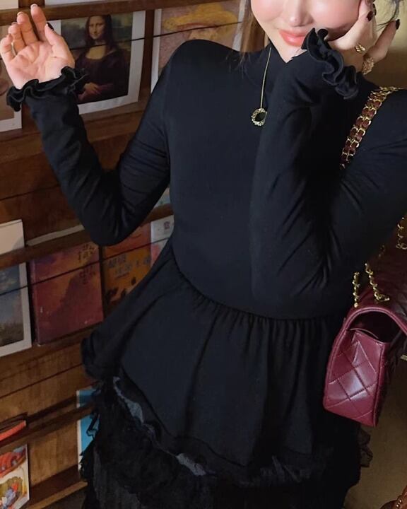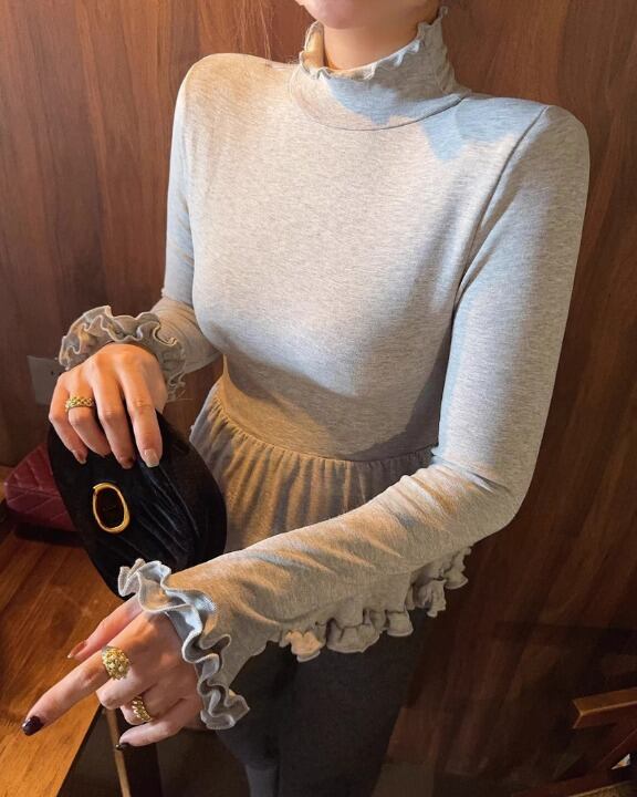 Mallow Edge High-Neck Peplum Cut-and-Sewn V0370 sh