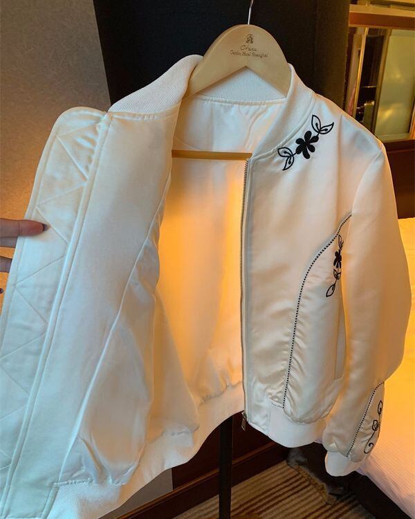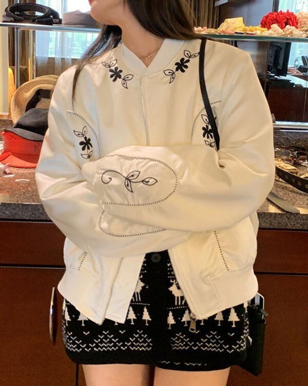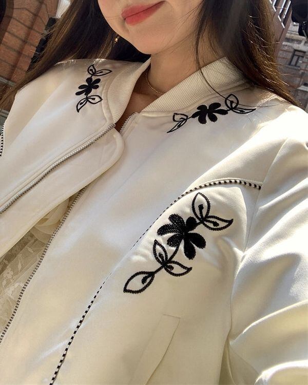 Floral Embroidered Zip-up Jacket V0443 ju