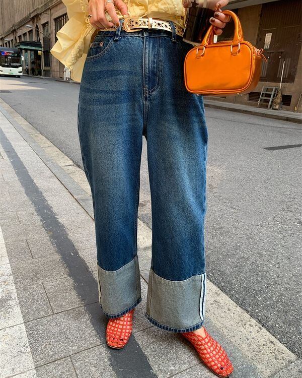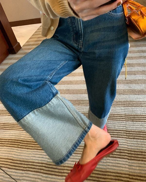 Contrast Hem Jeans V0444 ju