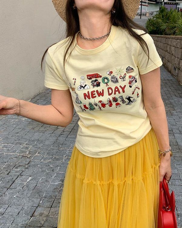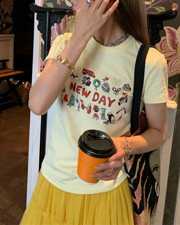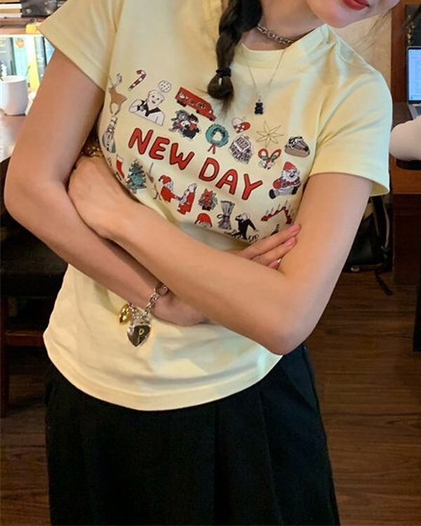 Illustration Print T-shirt V0449 ju