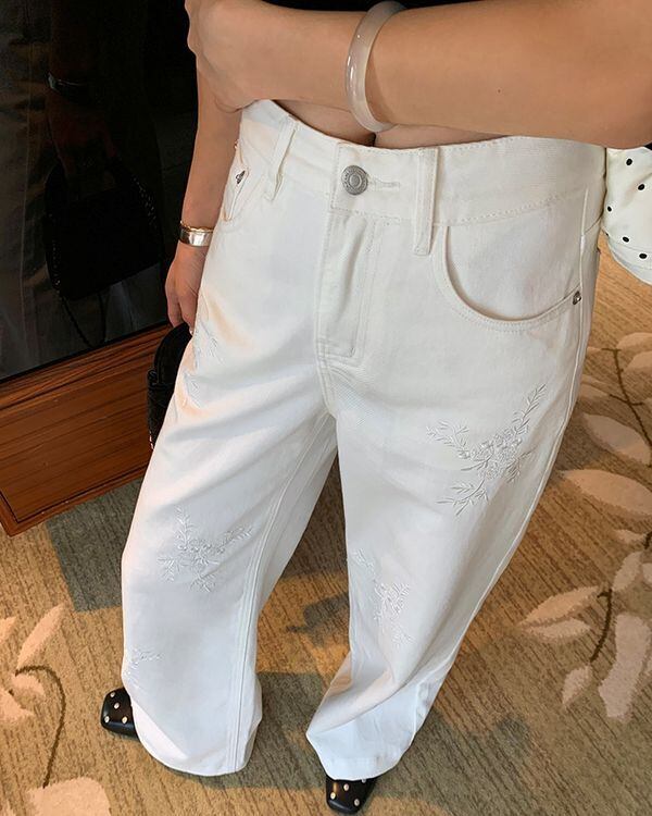 Floral Embroidered Pants V0448 ju