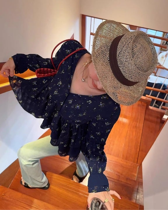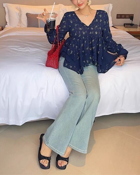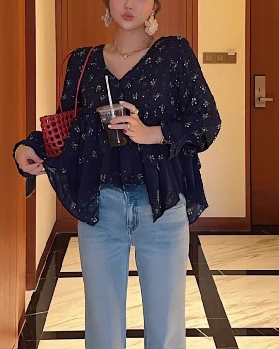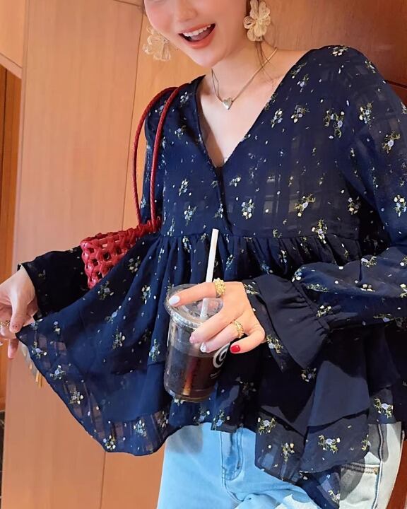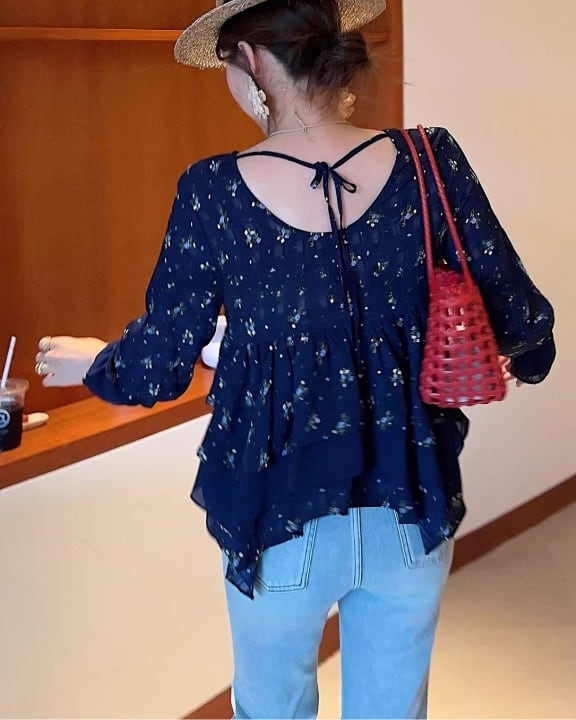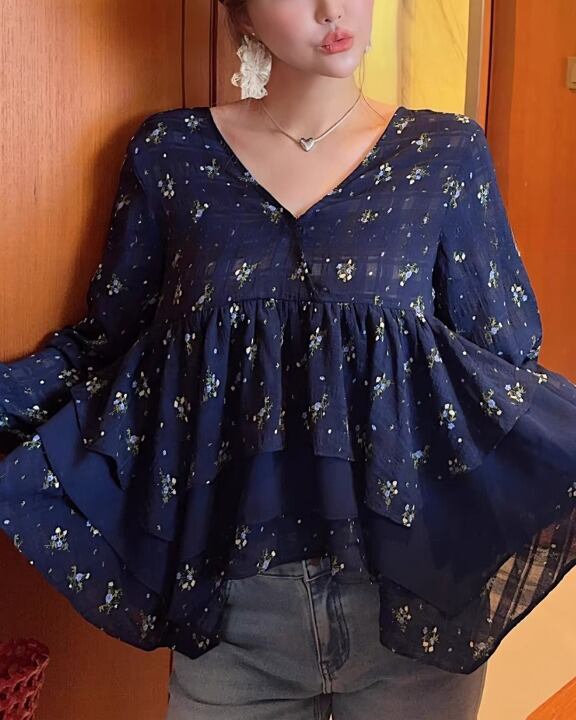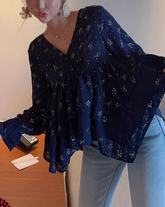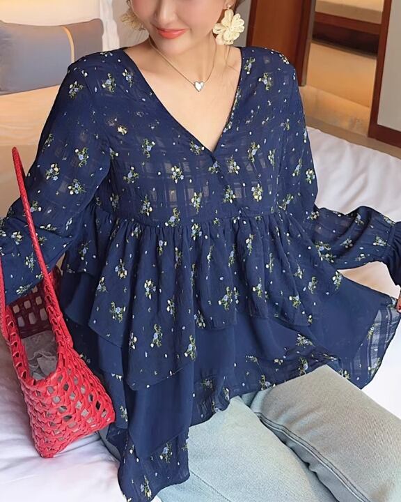 Ditsy Floral Tiered V-Neck Blouse V0371 sh