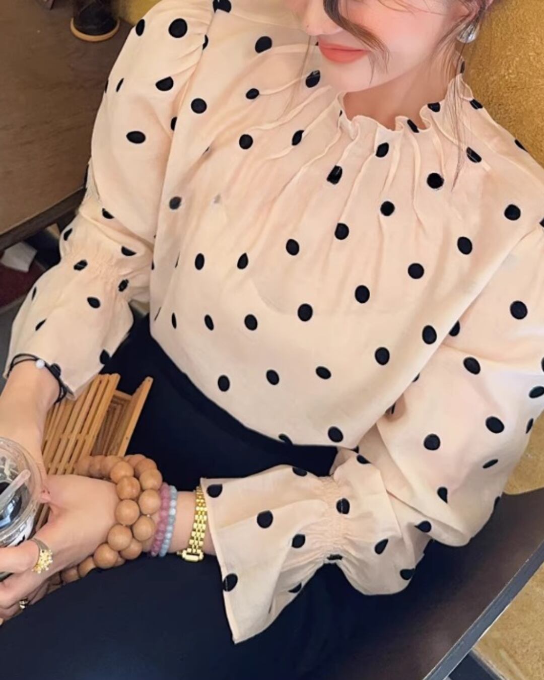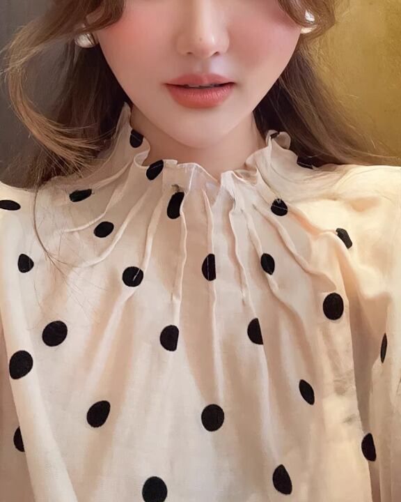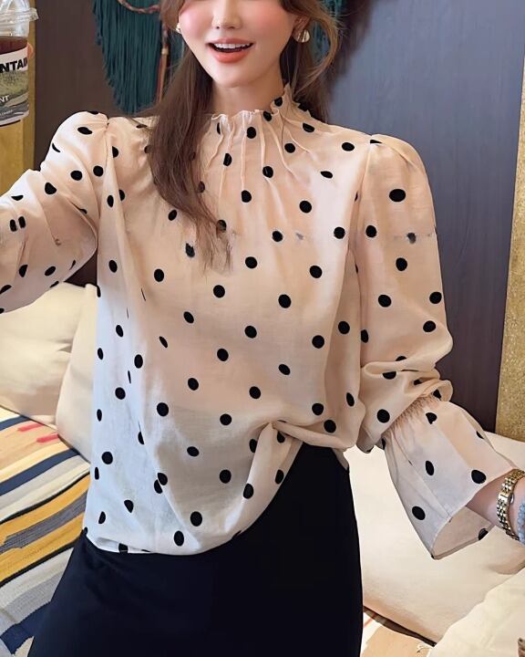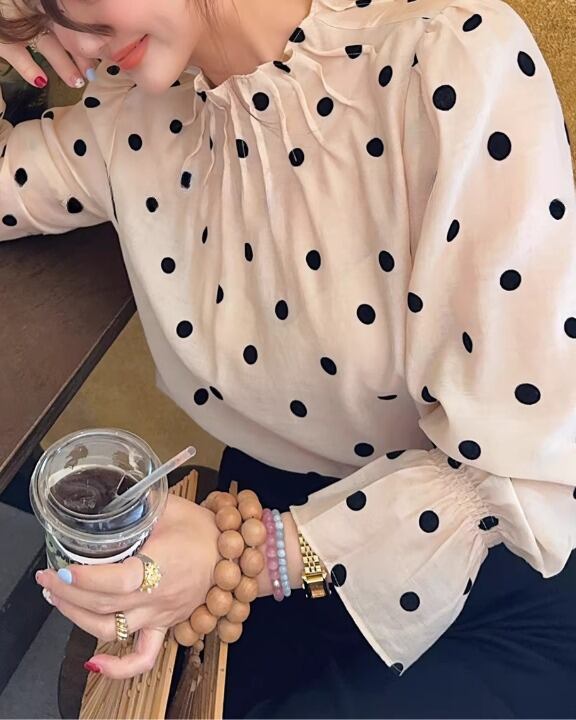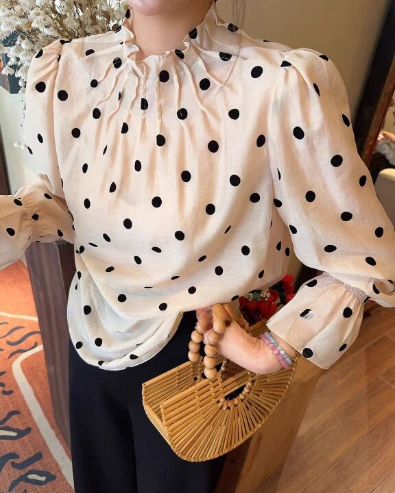 Classic Polka Dot Gathered Neck Blouse V0376 sh
