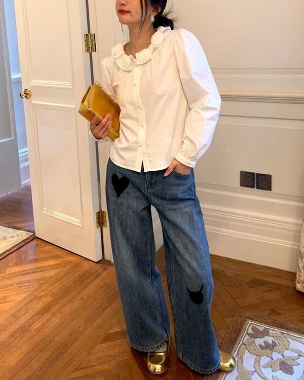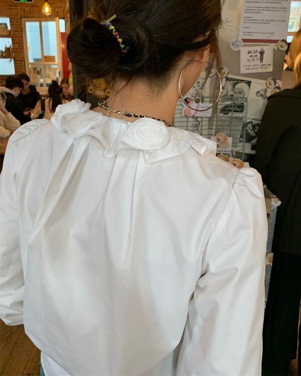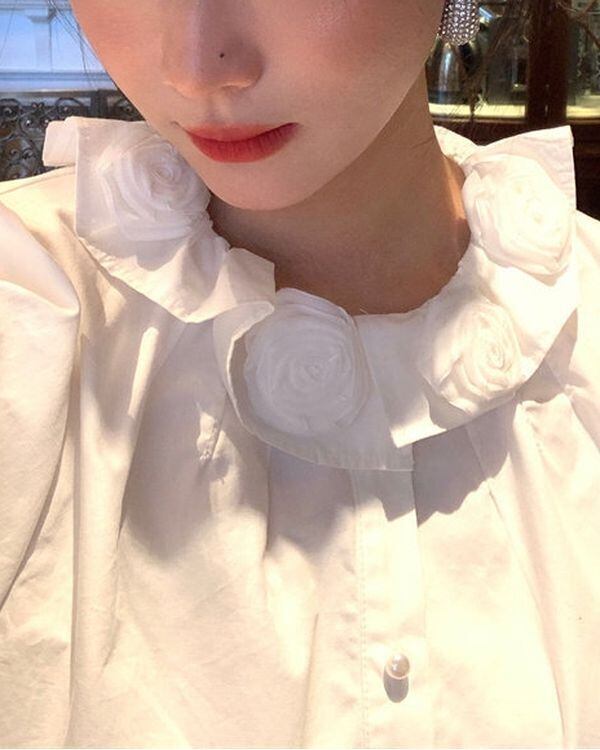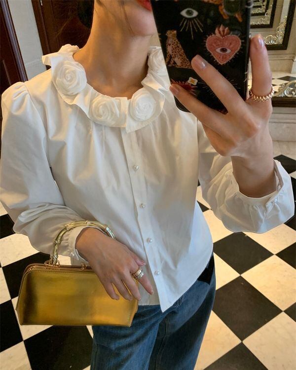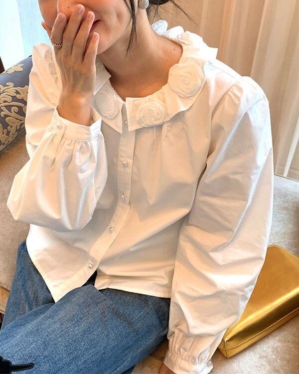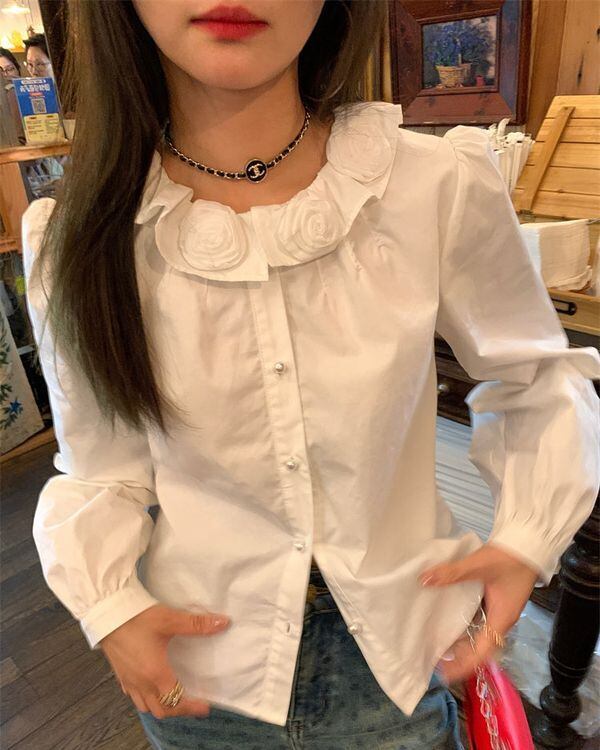 Flower Motif Collar Blouse V0463 ju