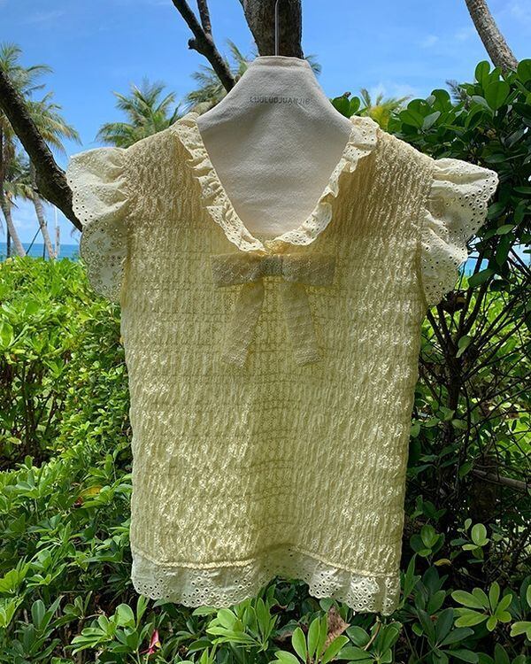 Embroidery Frill Blouse V0465 ju