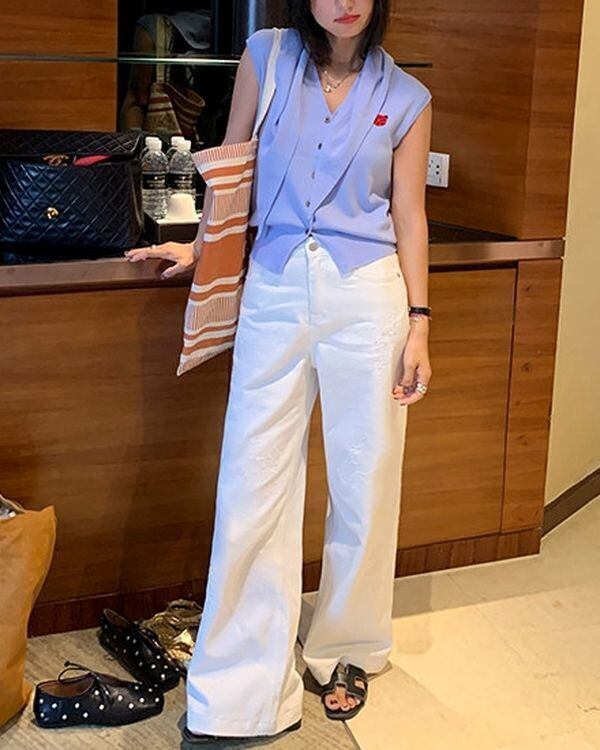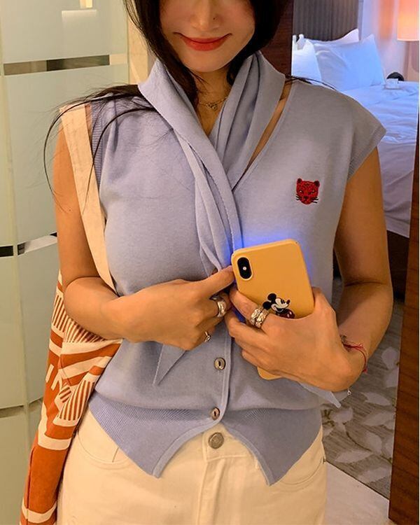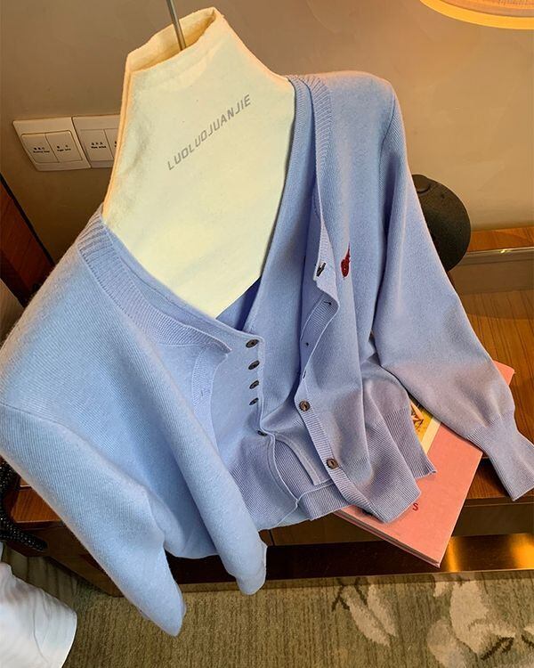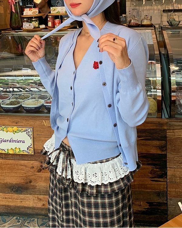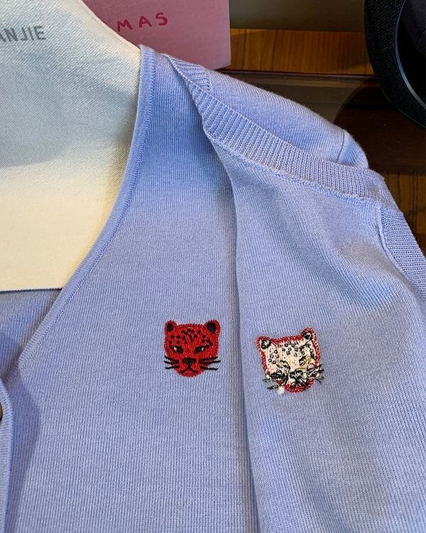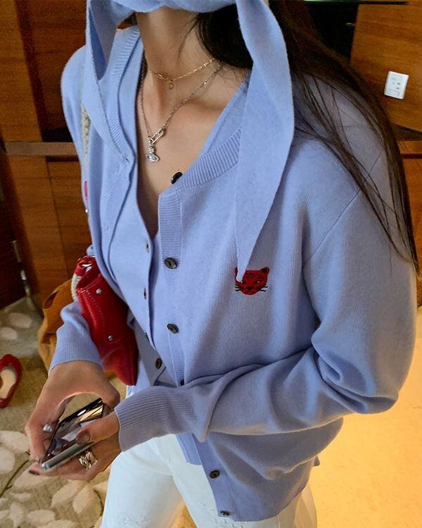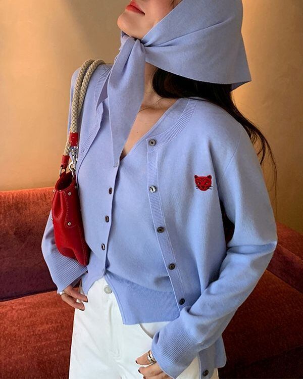 Animal Embroidered Cardigan / Sleeveles Top & Scalf V0467 ju